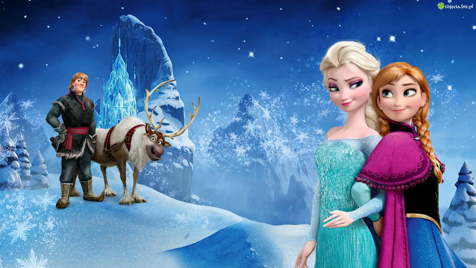 Zdjęcie Bajka, Kraina lodu, Frozen, Zima, Śnieg, Zamek, Księżniczka Elsa, Anna, Kristoff, Renifer Sven |