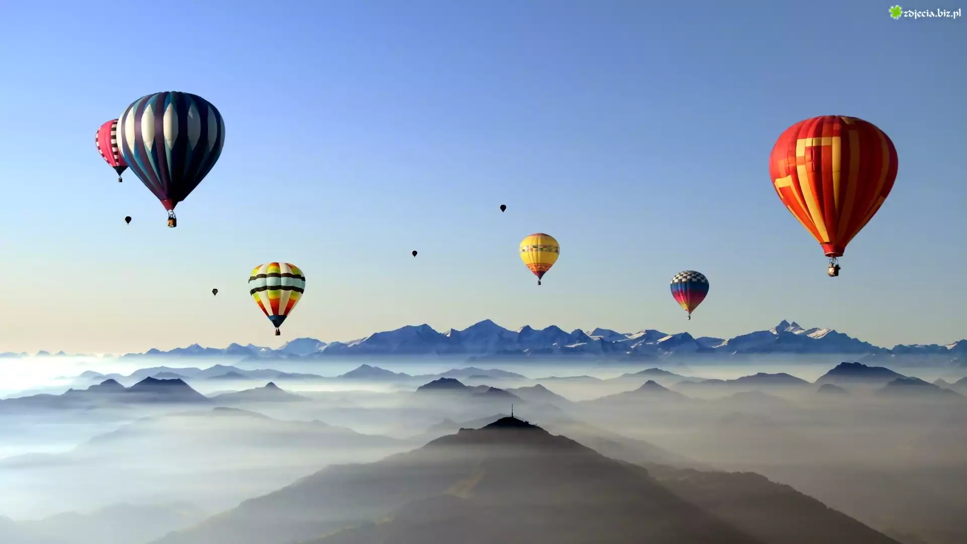 Zdjęcie Balony, Szczyty, Gór, Mgła