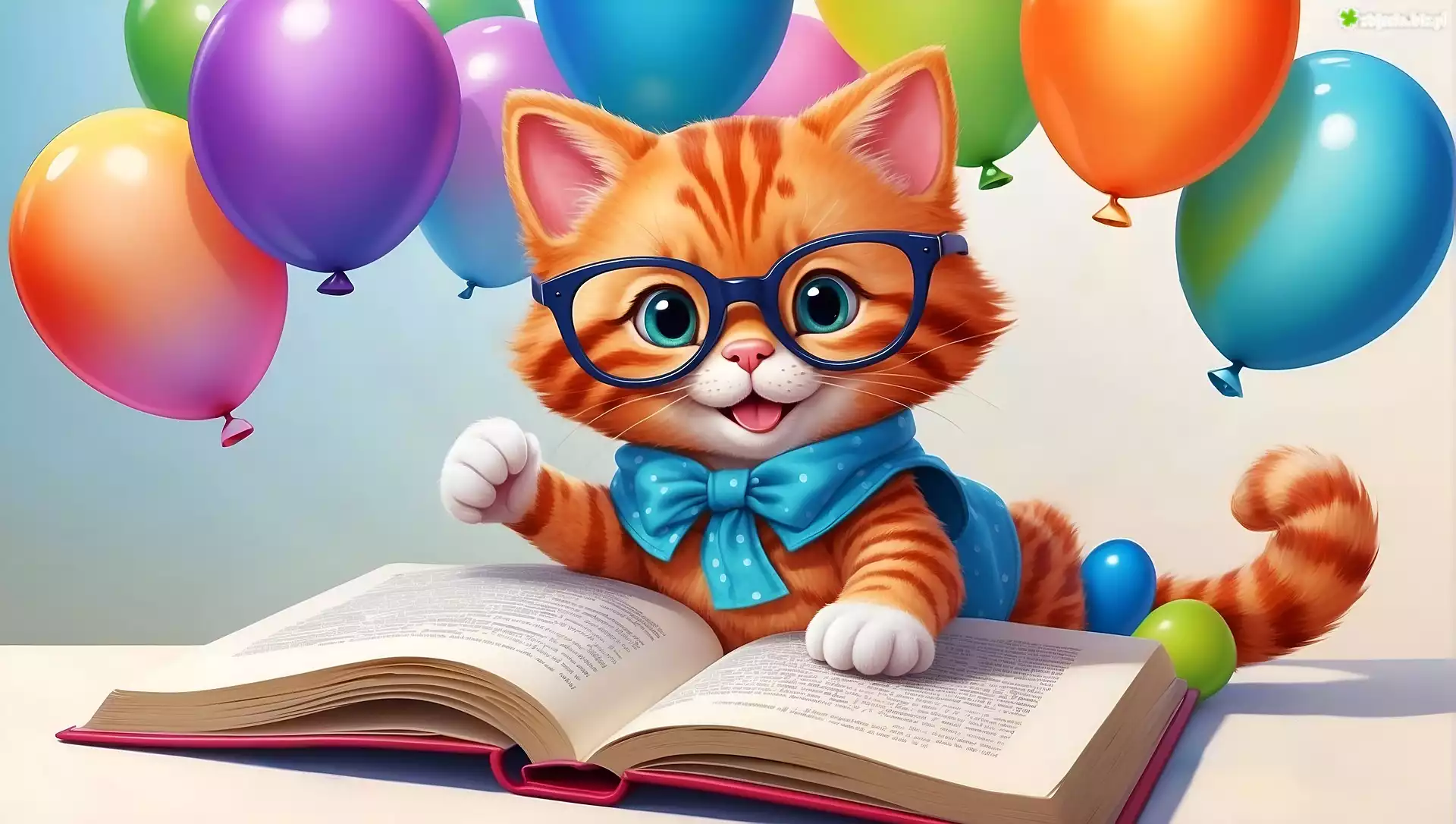 Zdjęcie Kotek, Okulary, Książka, Balony