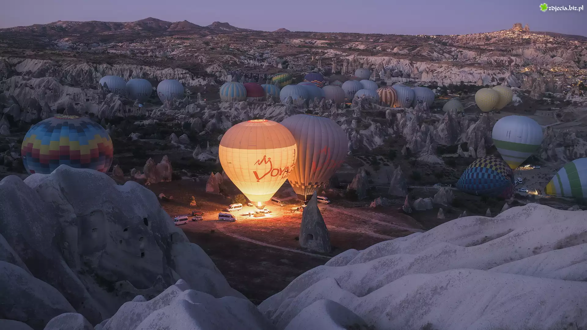 Zdjęcie Turcja, Kapadocja, Park Narodowy Goreme, Góry, Skały, Kościoły, Balony
