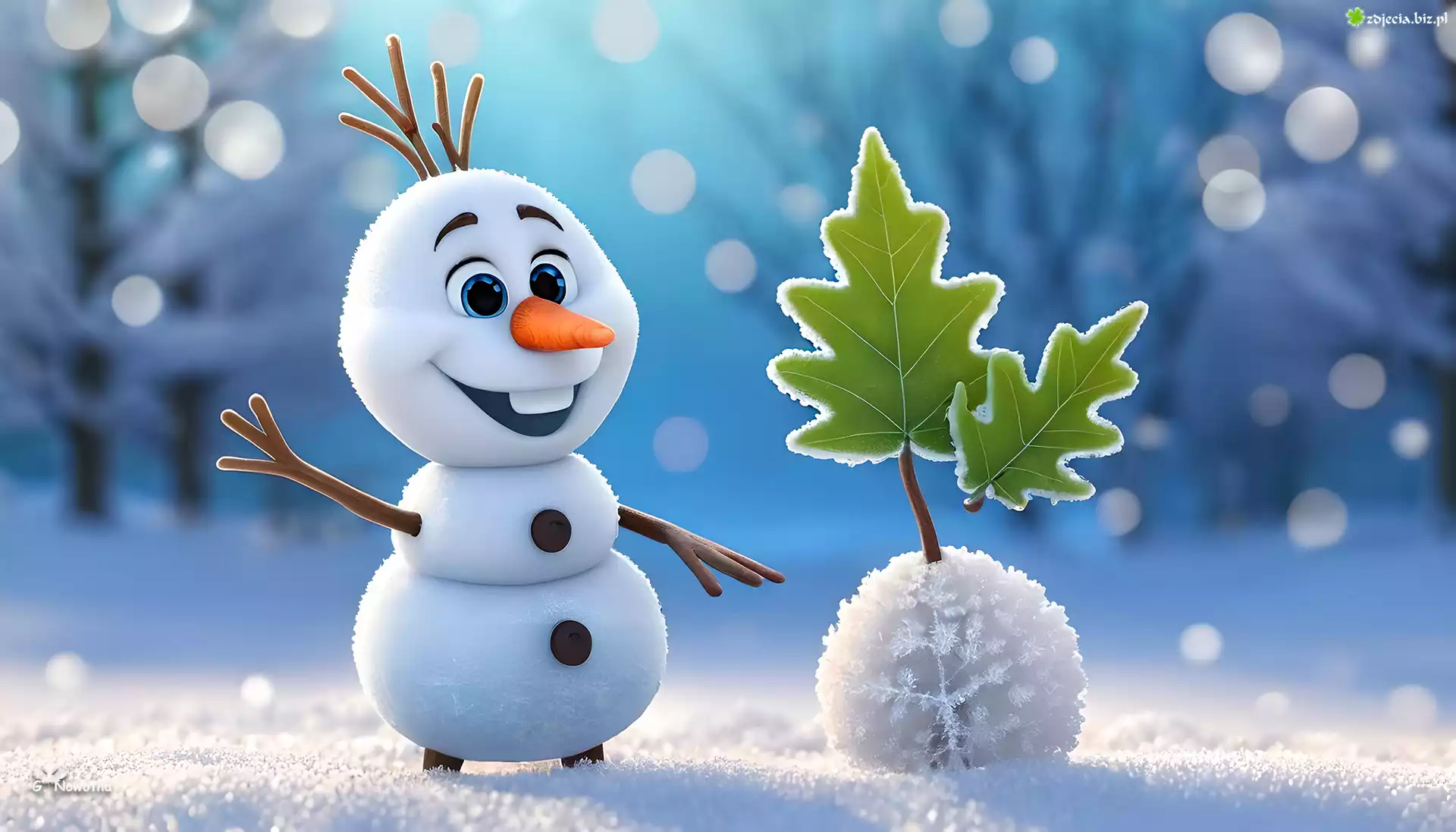 Zdjęcie Wesoły, Bałwan, Kulka, Liście, Grafika