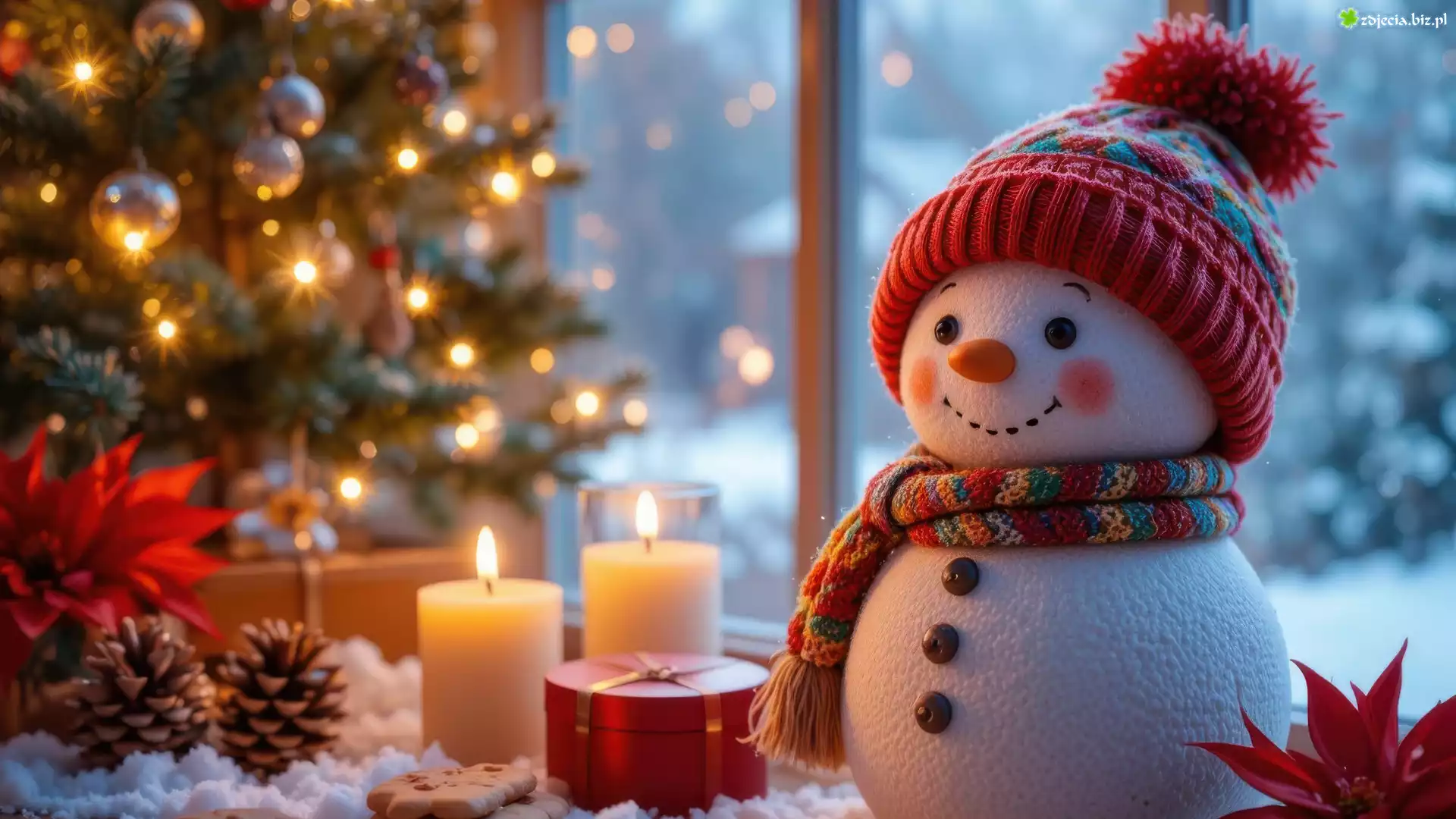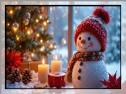 Zdjęcie Świąteczne, Bałwanek, Okno, Choinka, Świece