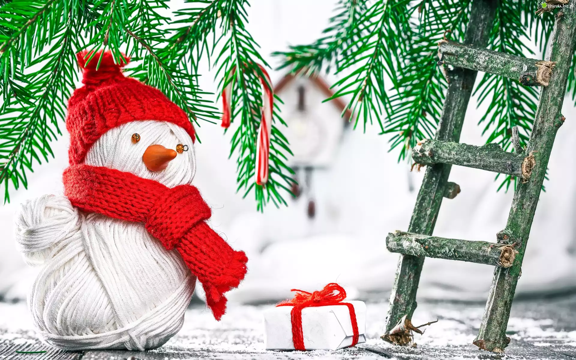 Zdjęcie, Bałwanek, Drabina, Paczka, Gałązki