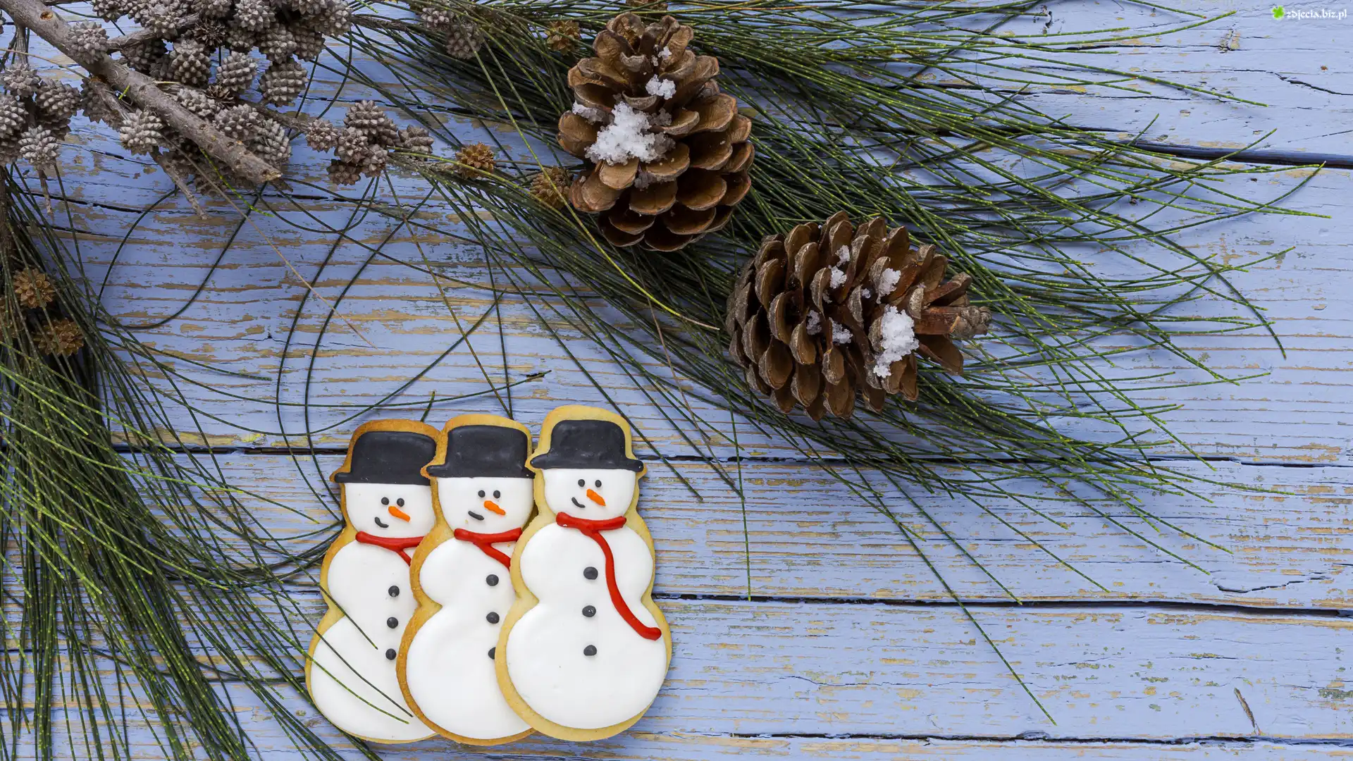 Zdjęcie Bałwanki, Szyszki, Kompozycja, Świąteczne, Ciasteczka, Pierniki
