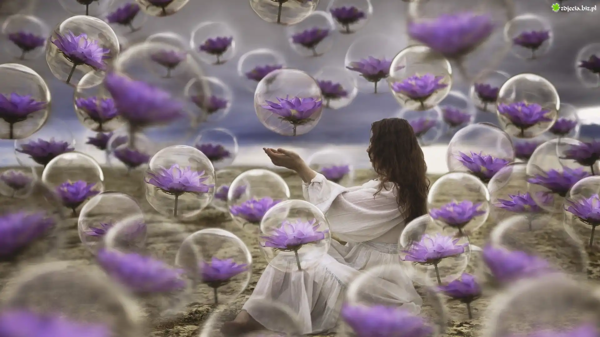 Zdjęcie Bańki, Fioletowe, Kwiaty, Dziewczyna