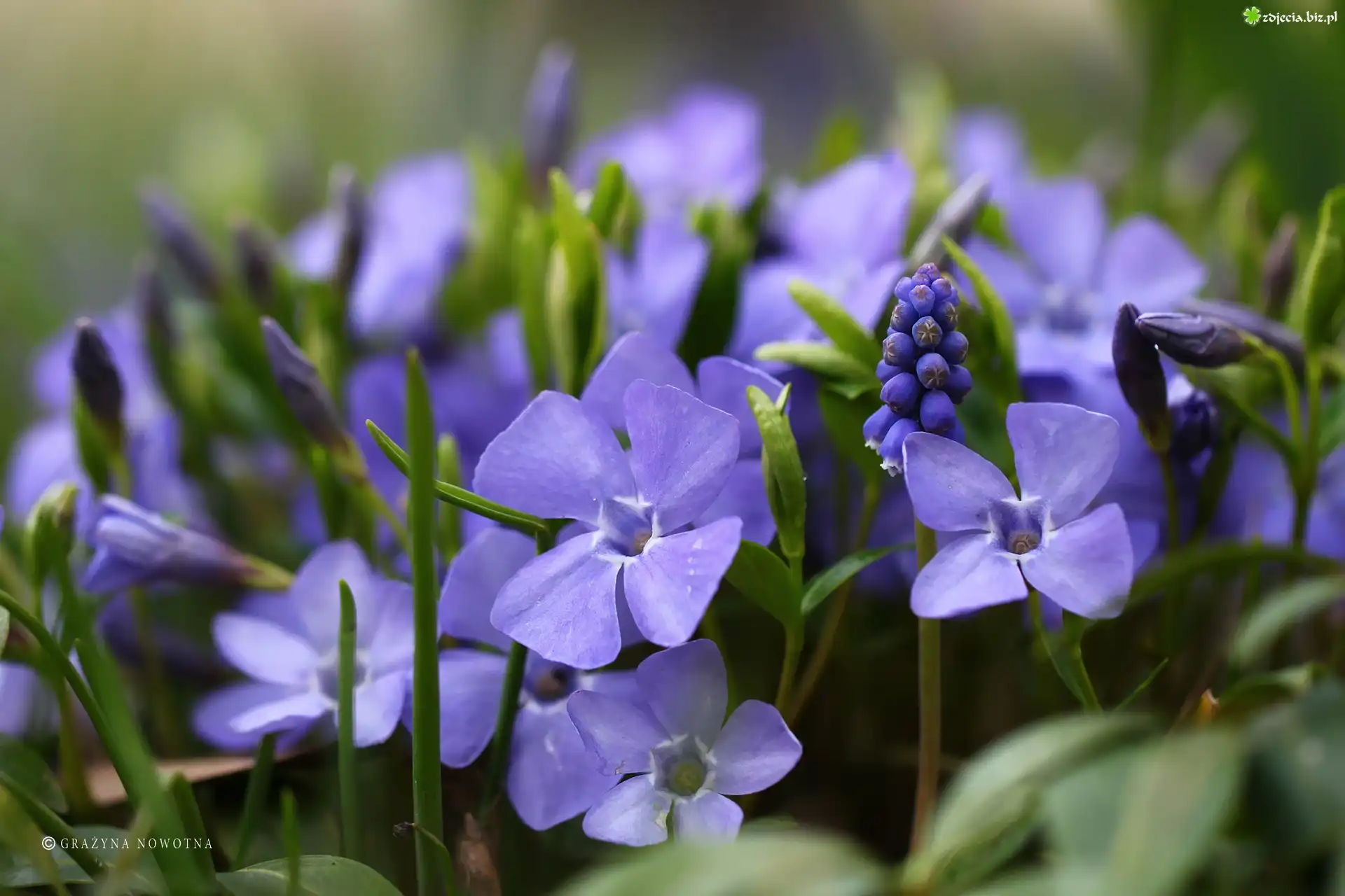 Zdjęcie, Barwinki, Szafirki, Niebieskie, Kwiaty