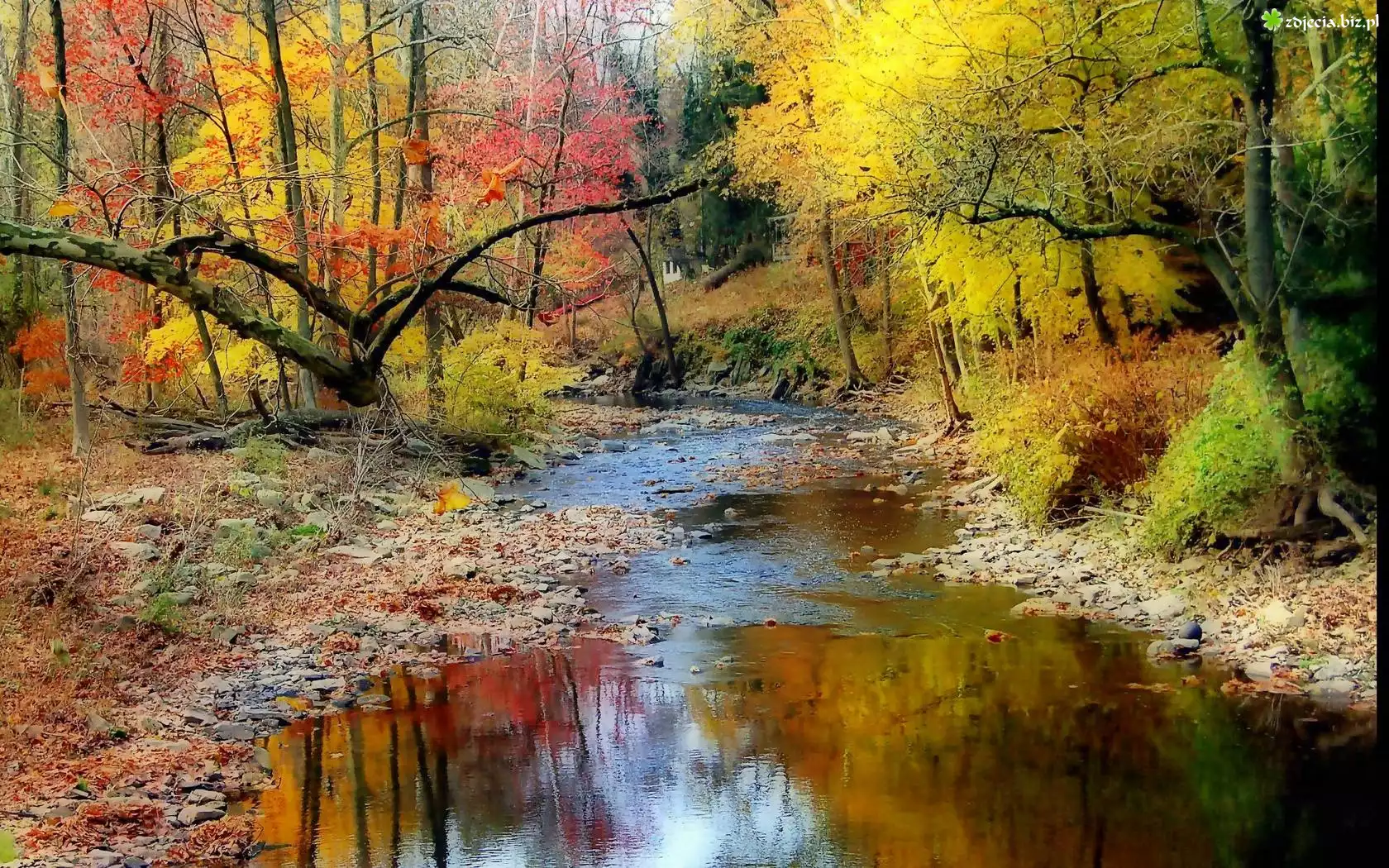 Zdjęcie Barwy, Jesieni, Las, Rzeka, Kamienie, Odbicie
