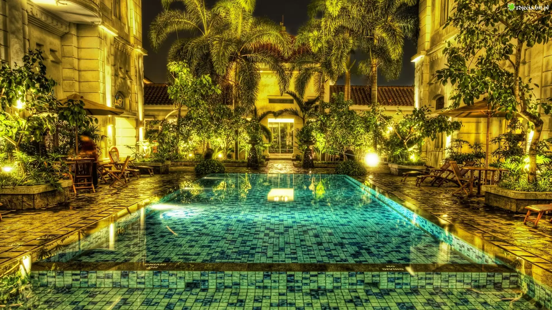 Zdjęcie, Dom, Basen, Palmy