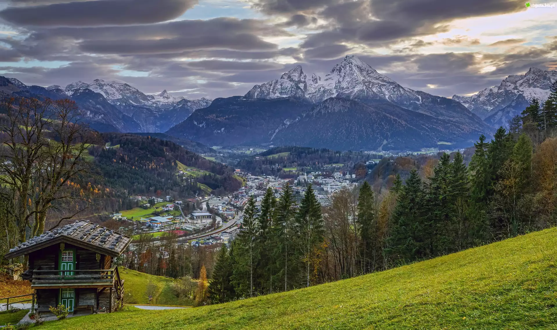 Zdjęcie, Niemcy, Bawaria, Góry, Dolina, Miasteczko, Dom, Drzewa