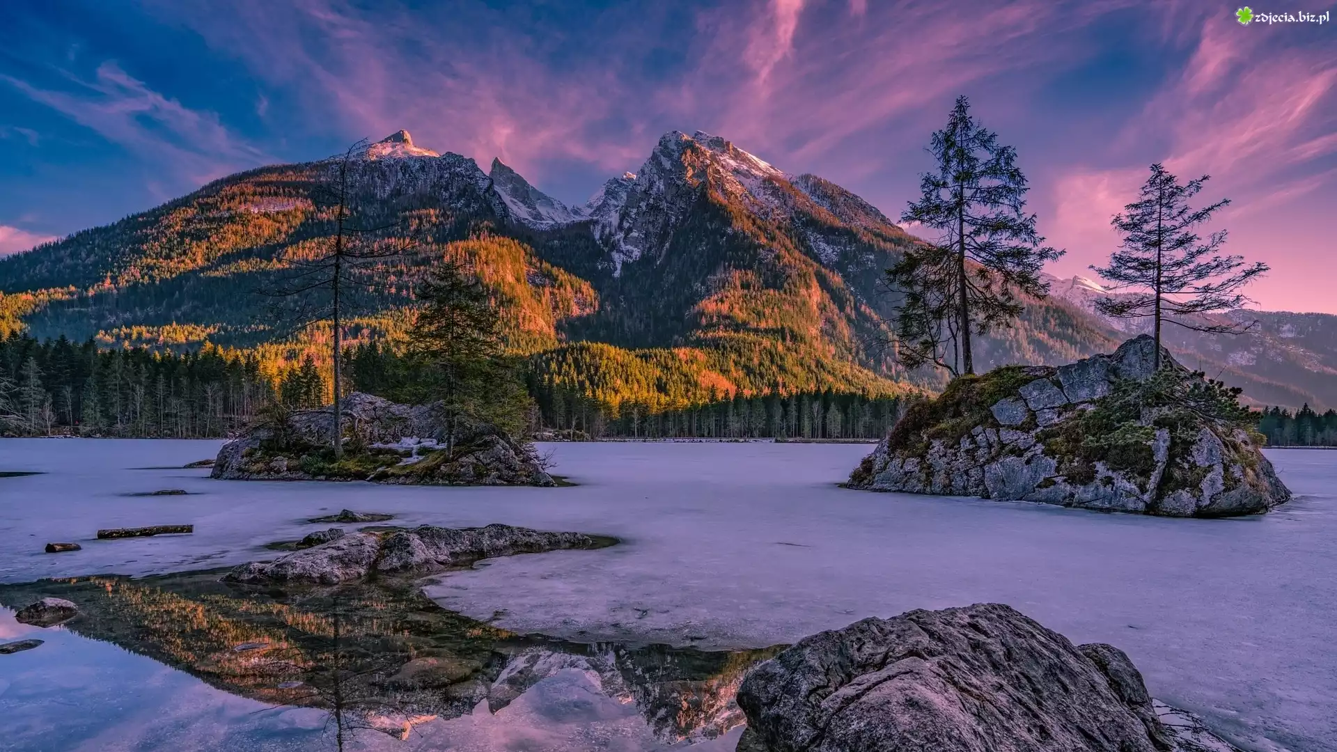 Zdjęcie Niemcy, Bawaria, Góry Alpy, Jezioro Hintersee, Skały, Świerki
