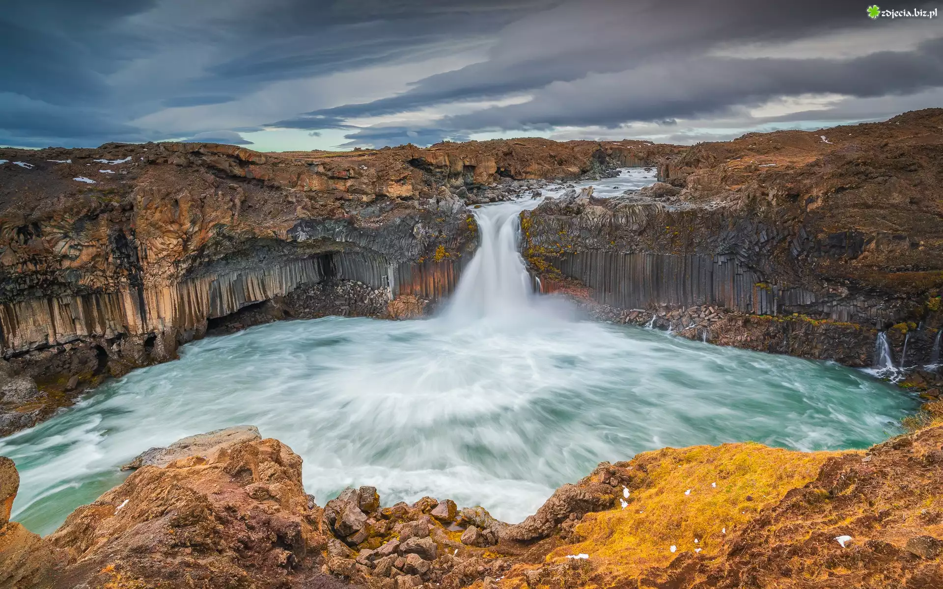 Zdjęcie Islandia, Wodospad, Aldeyjarfoss, Bazaltowe, Skały, Rzeka Skjalfandafljot