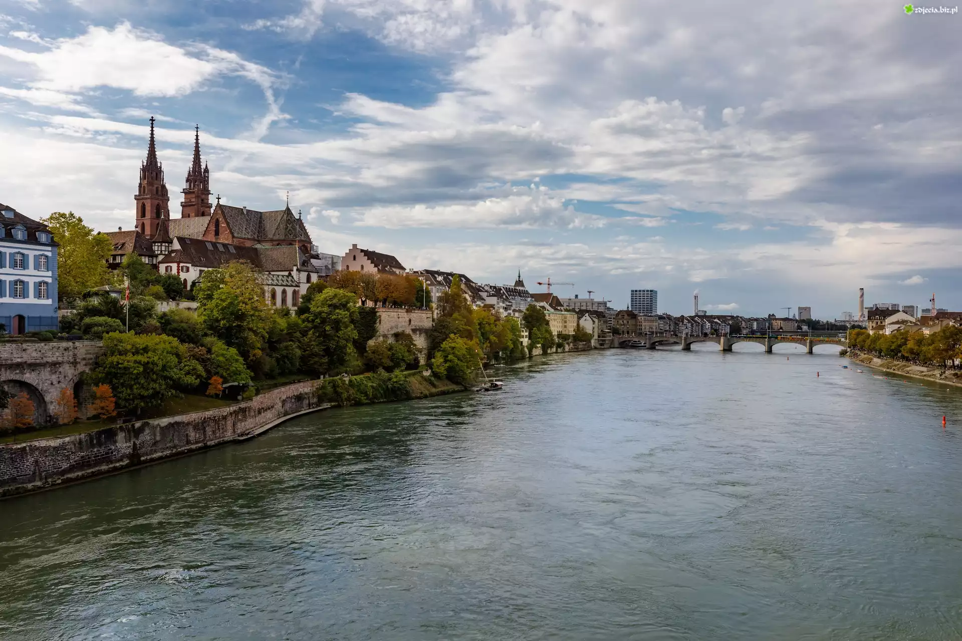 Zdjęcie Szwajcaria, Bazylea, Rzeka Ren, Domy, Kościół, Most