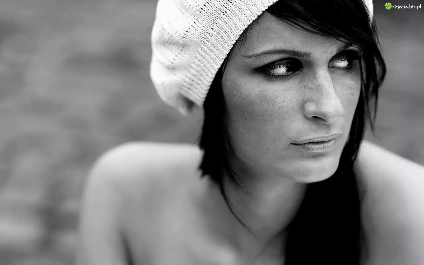Zdjęcie Kobieta, Beret, Ramiona, Czarno-Białe
