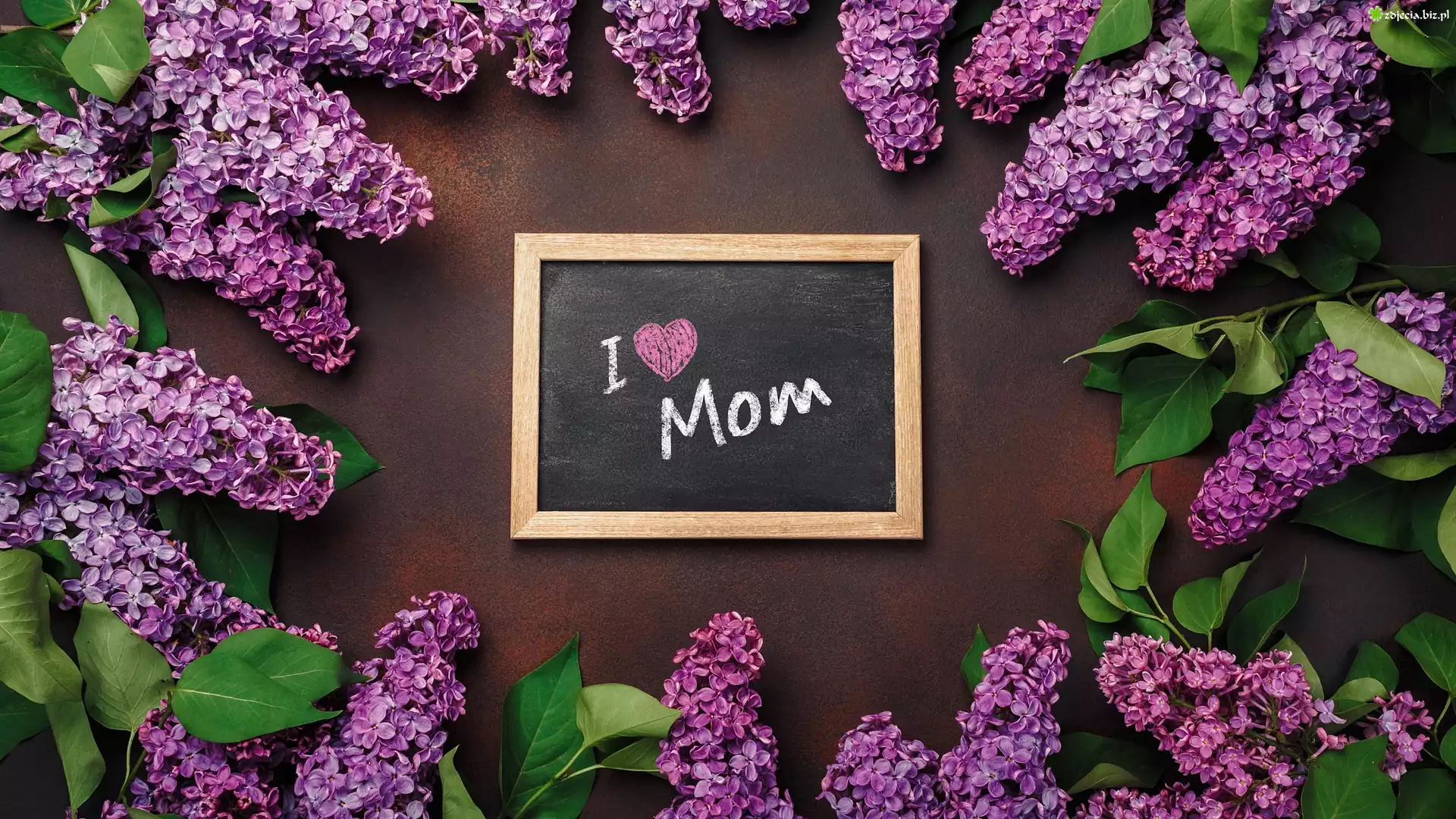 Zdjęcie Kwiaty, Bez, Liście, Tabliczka, Życzenia, Dzień Matki
