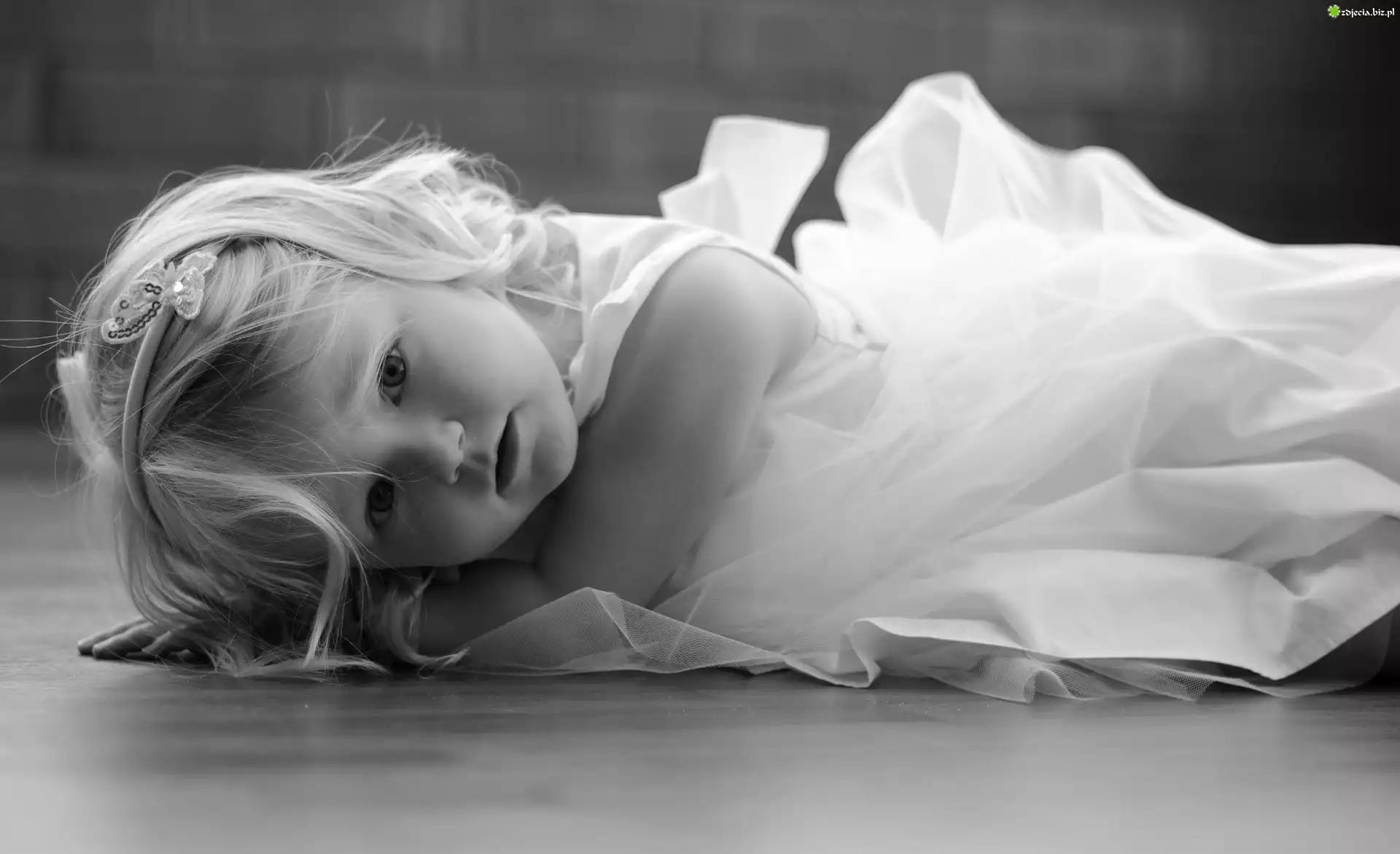 Zdjęcie, Dziewczynka, Biała, Sukienka