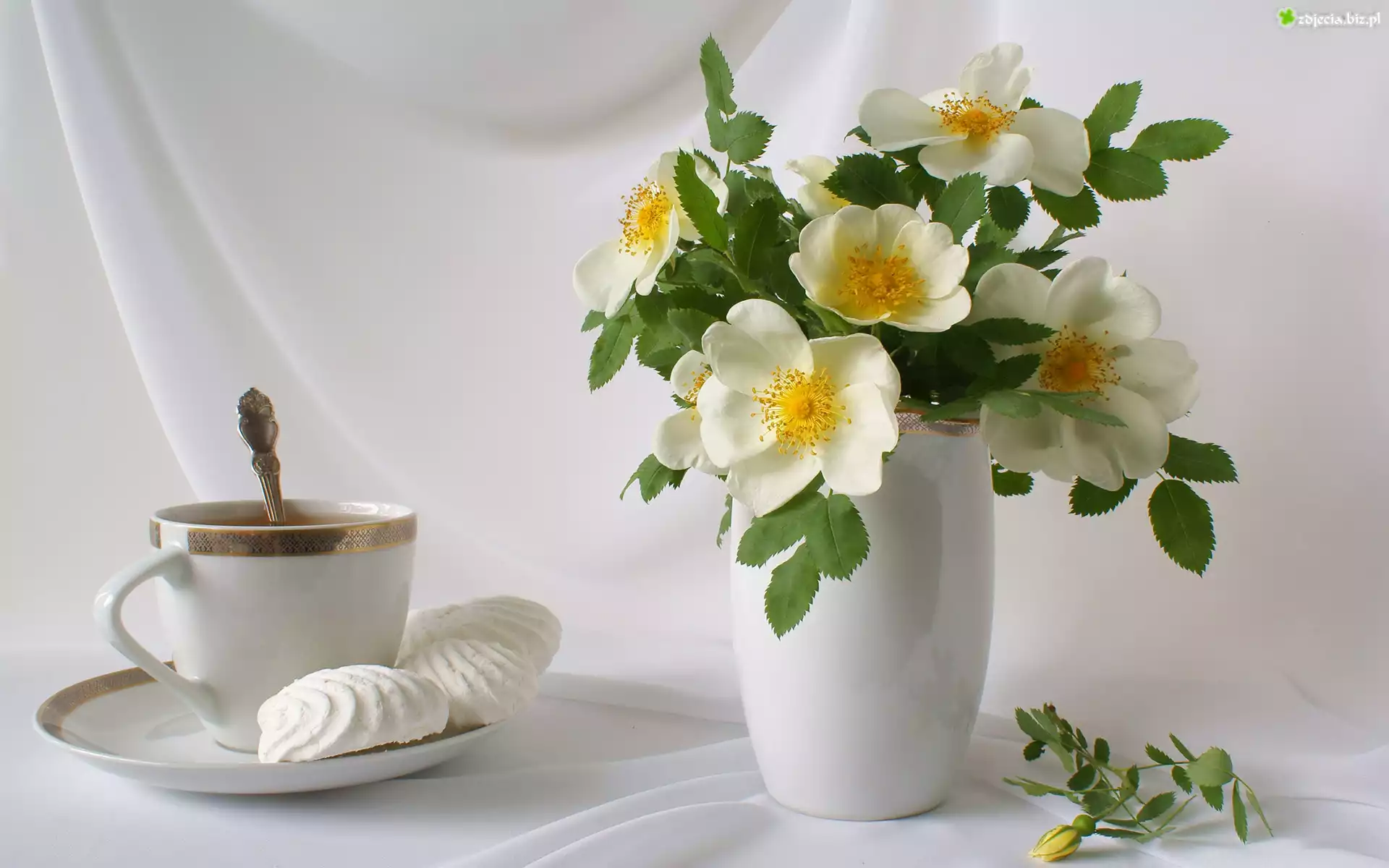 Zdjęcie Biała, Porcelana, Dzika, Róża, Kompozycja, Bukiet Kwiatów
