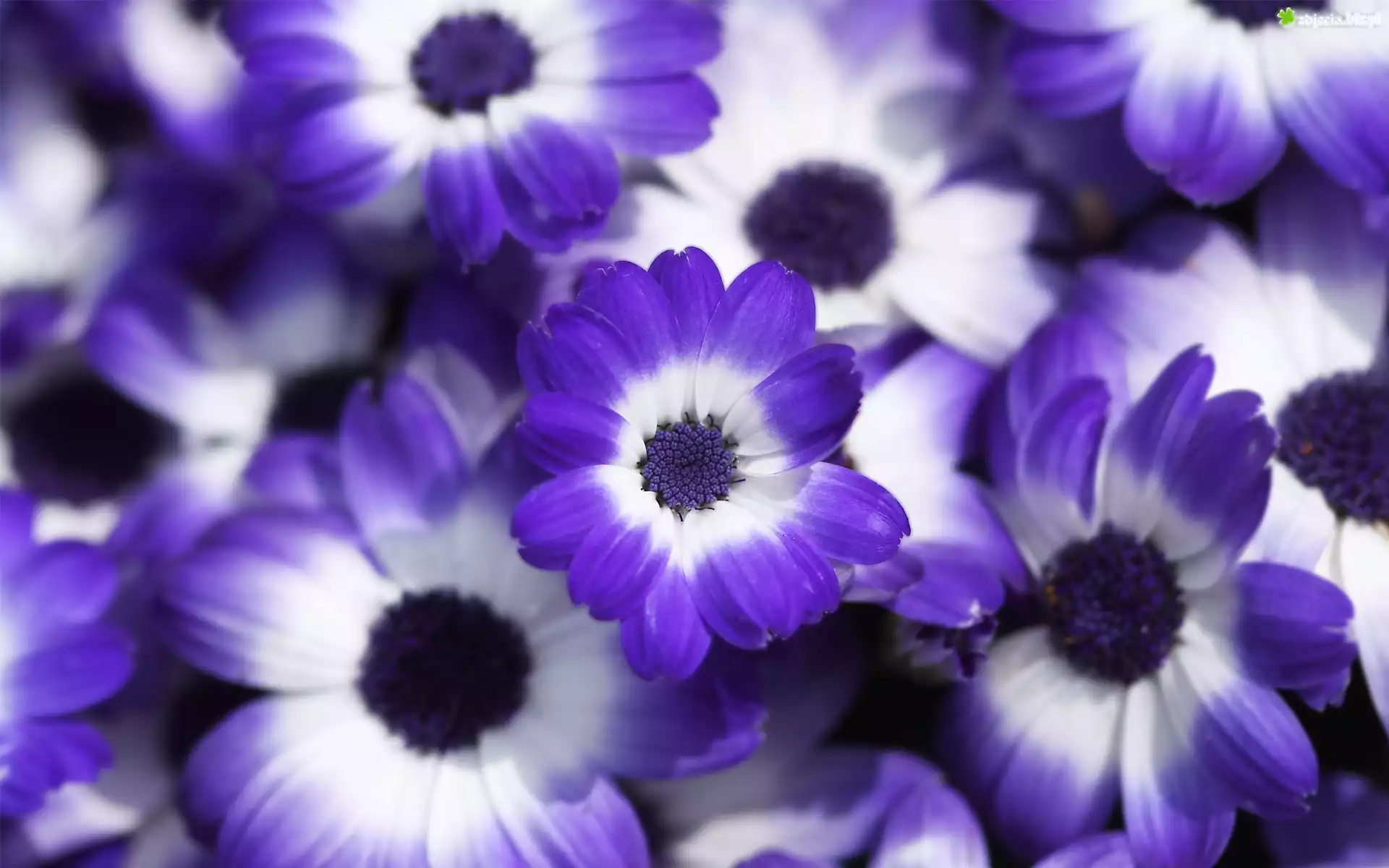 Zdjęcie Fioletowo, Biała, Cyneraria