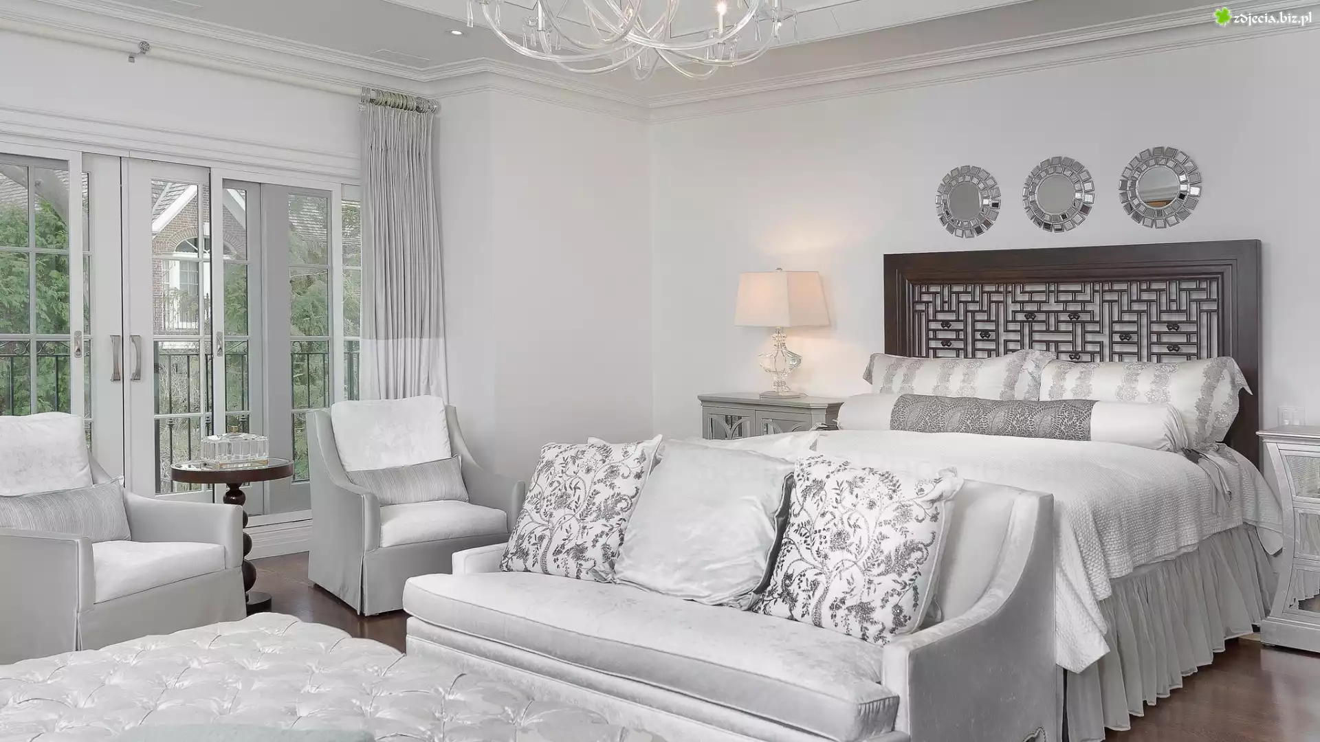Zdjęcie, Biała, Sypialnia, Kanapa, Fotele