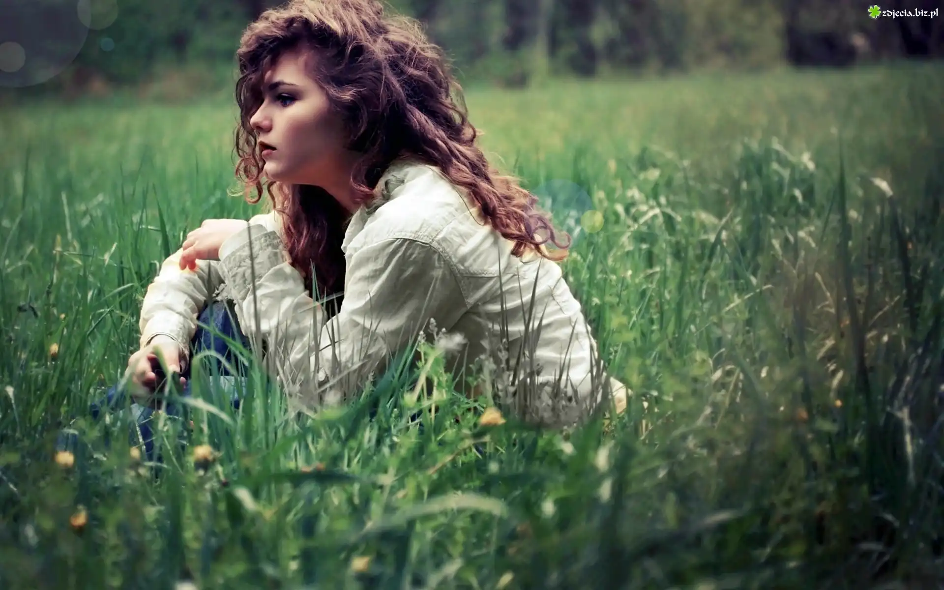 Zdjęcie Łąka, Kobieta, Modelka, Biała, Kurteczka