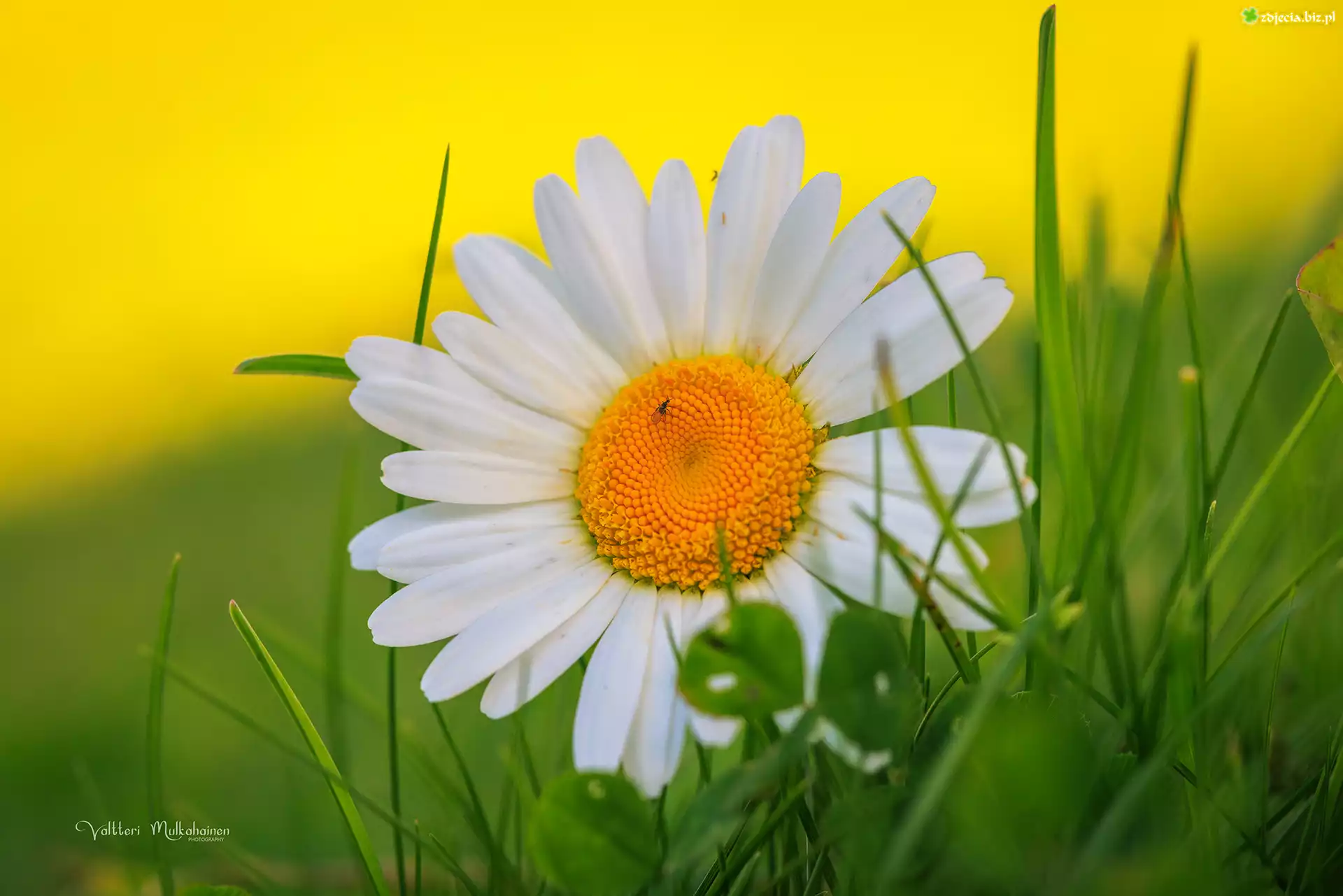 Zdjęcie Kwiat, Biała, Stokrotka, Trawa, Źdźbła