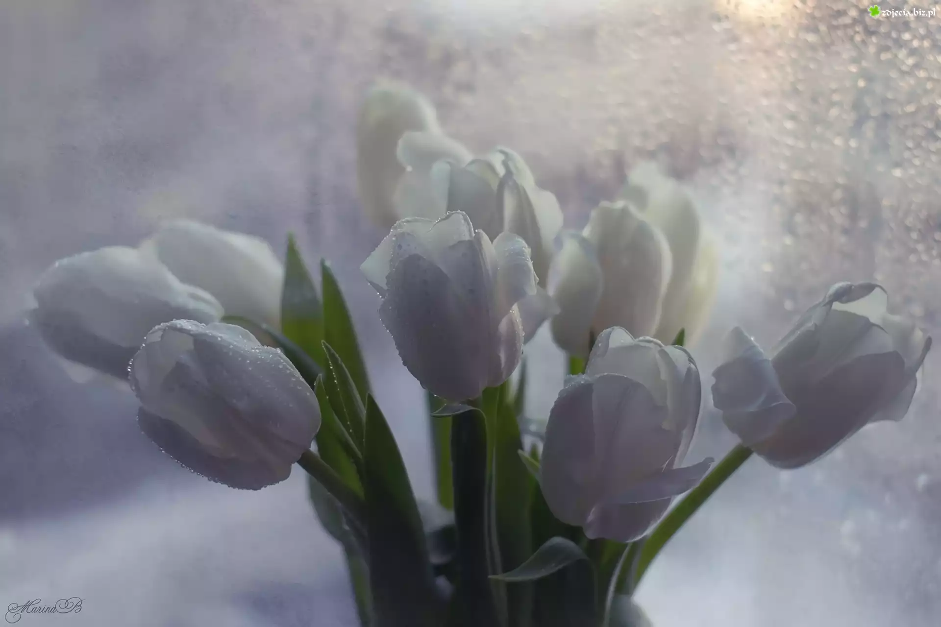 Zdjęcie, Białe, Tulipany, Bukiet, Krople