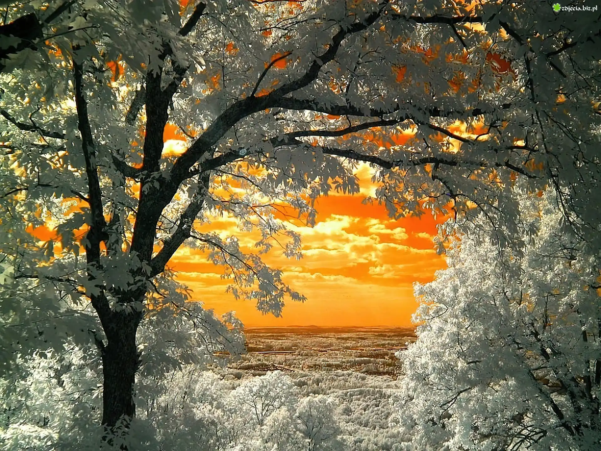 Zdjęcie, Białe, Drzewa, Chmury, Niebo