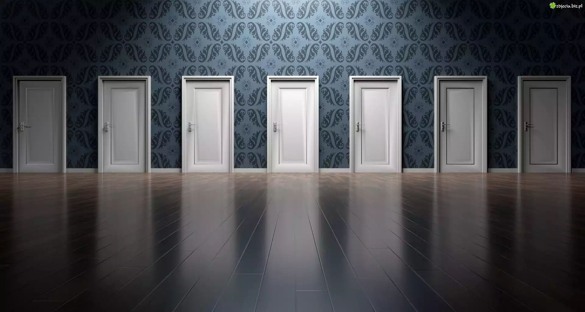 Zdjęcie Białe, Drzwi, Zamknięte, Ściana, Niebieska