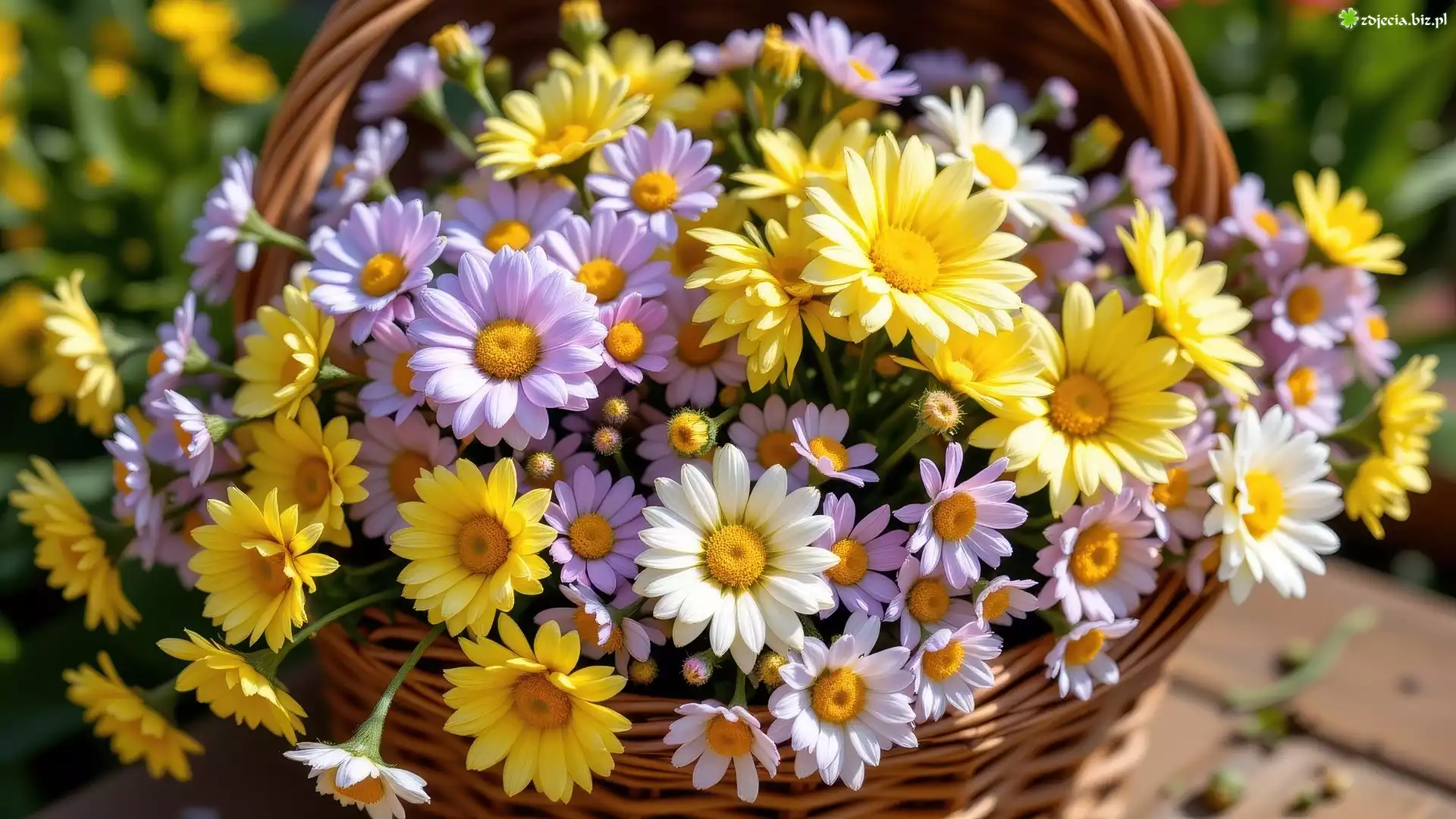 Zdjęcie Żółte, Białe, Fioletowe, Kwiaty, Koszyk