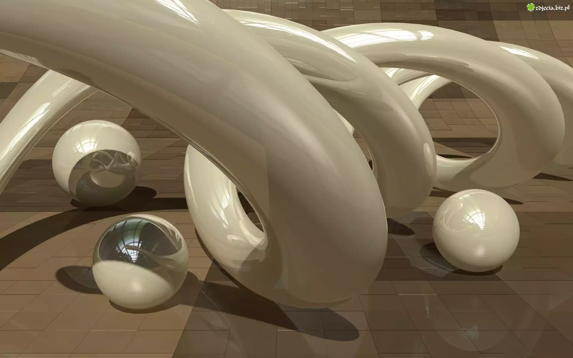 Zdjęcie Białe, Kulki, Spirala, Grafika 3D
