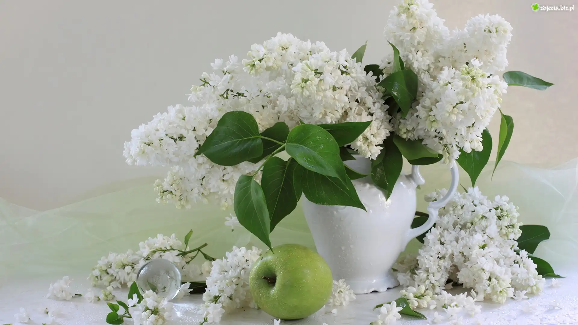 Zdjęcie Białe, Bzy, Jabłka, Wazon