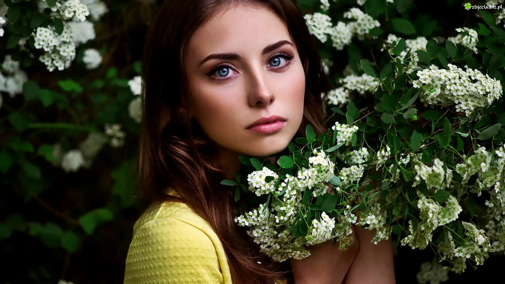 Zdjęcie, Kobieta, Białe, Kwiaty