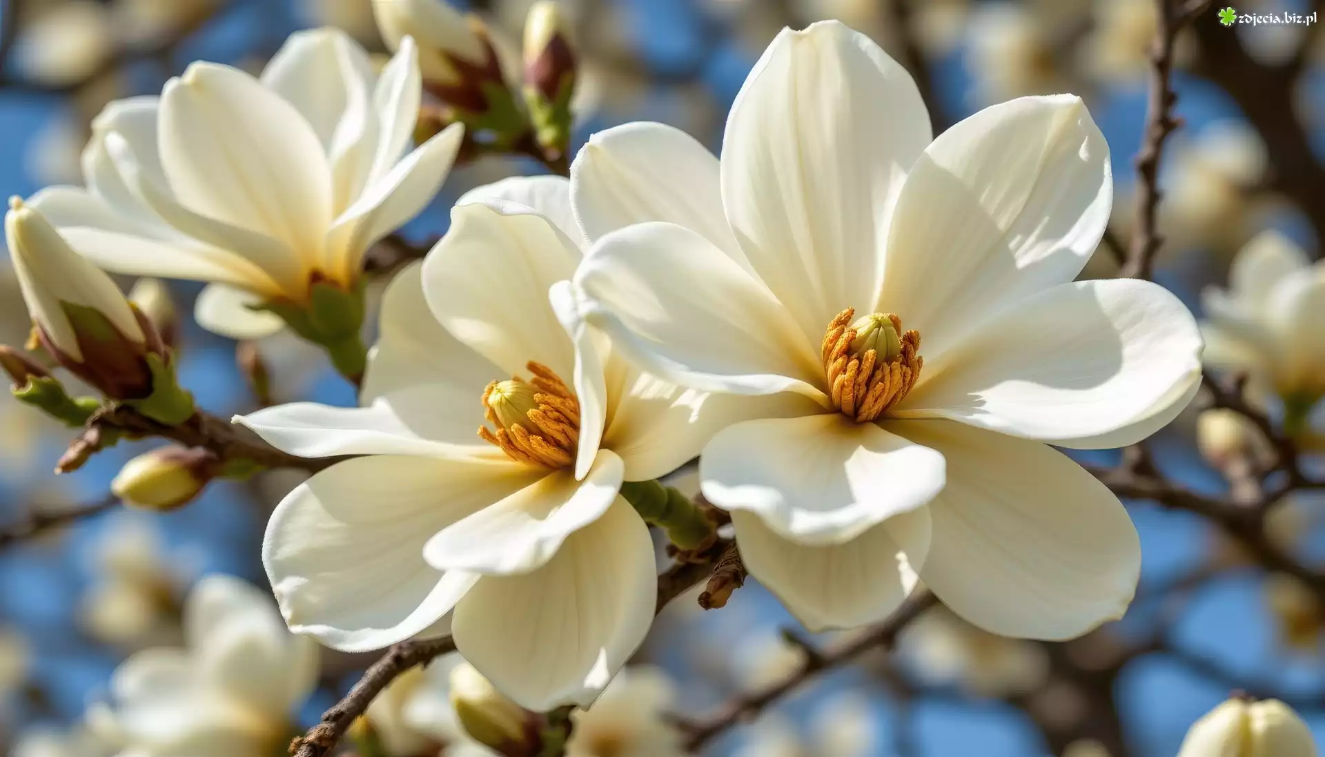 Zdjęcie Rozwinięte, Białe, Kwiaty, Magnolia, Gałązki