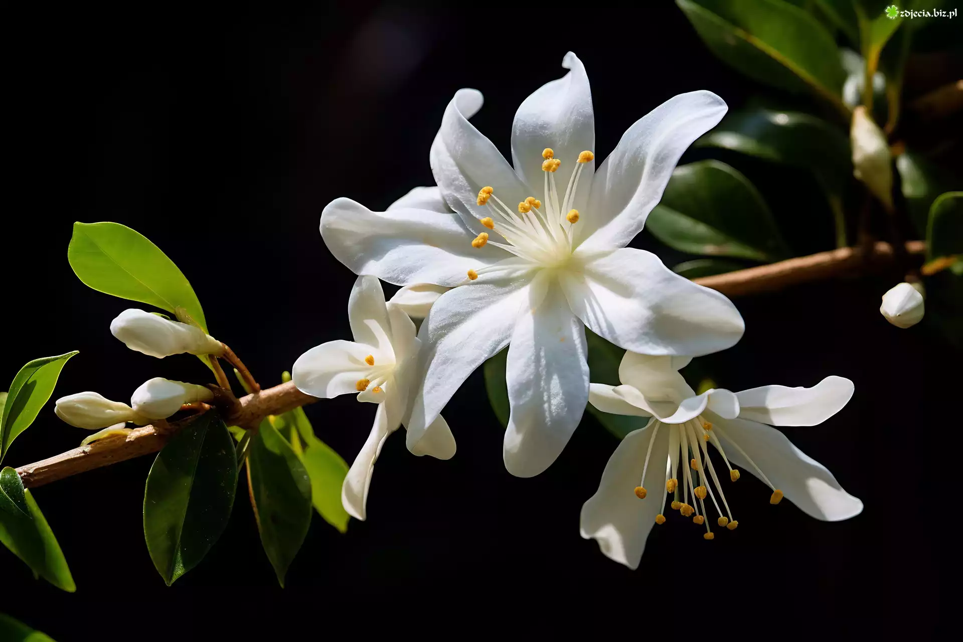 Zdjęcie Rozświetlone, Białe, Kwiaty, Gałązka, Liście