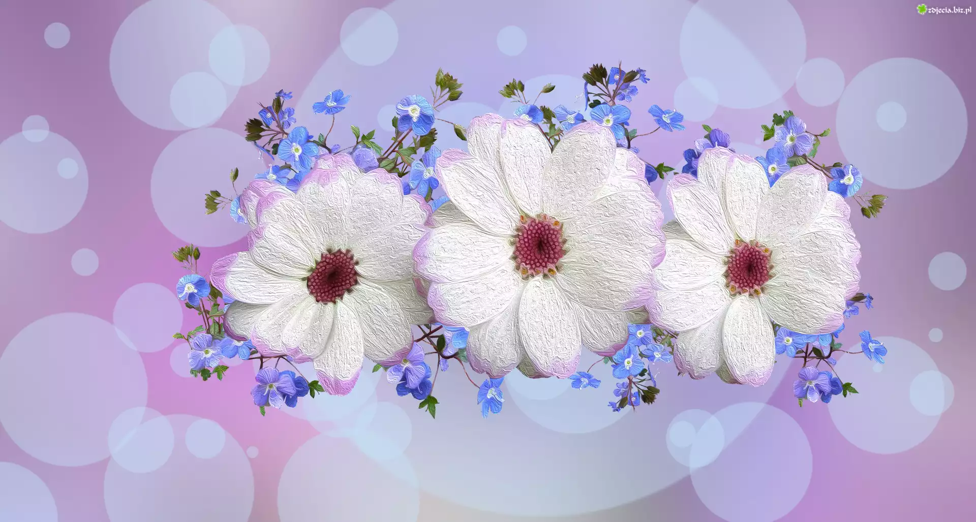 Zdjęcie Białe, Niebieskie, Kwiaty, 2D