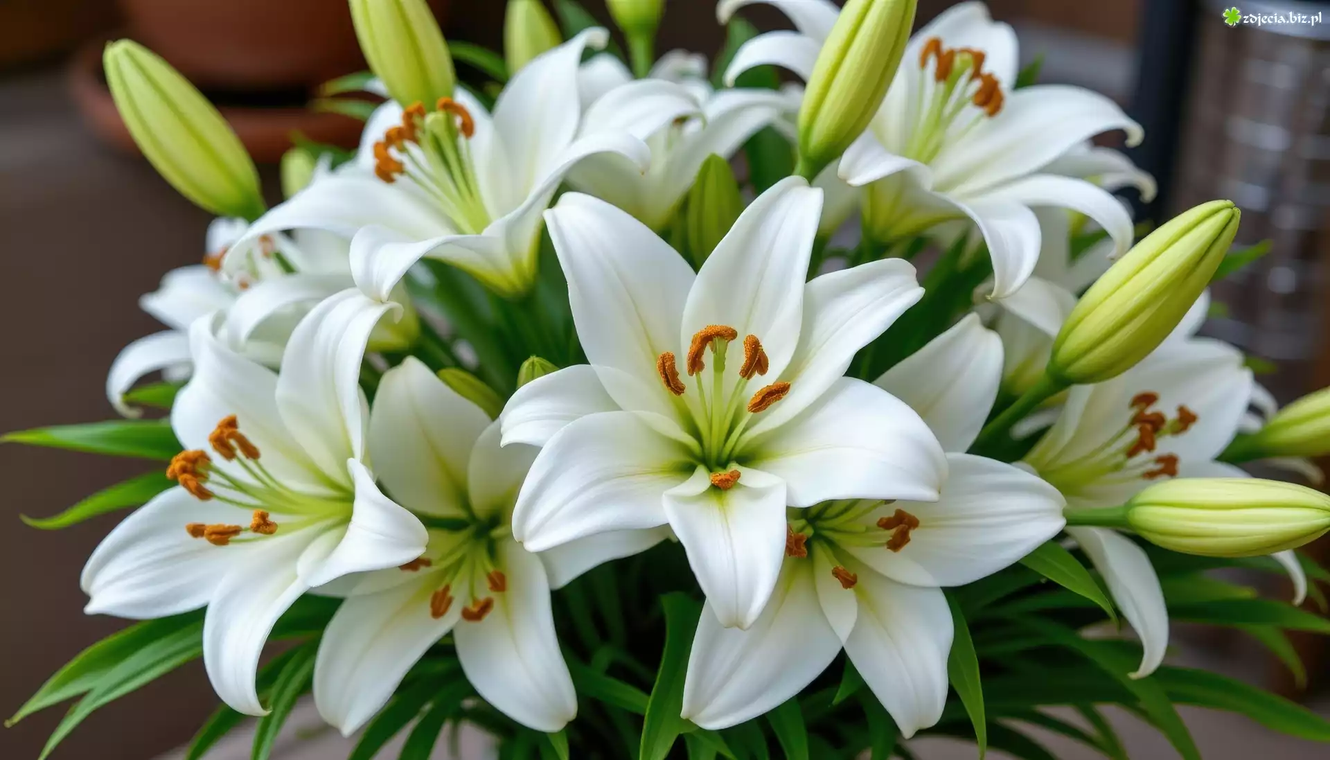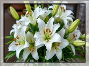 Zdjęcie, Rozwinięte, Białe, Kwiaty, Lilie, Pąki
