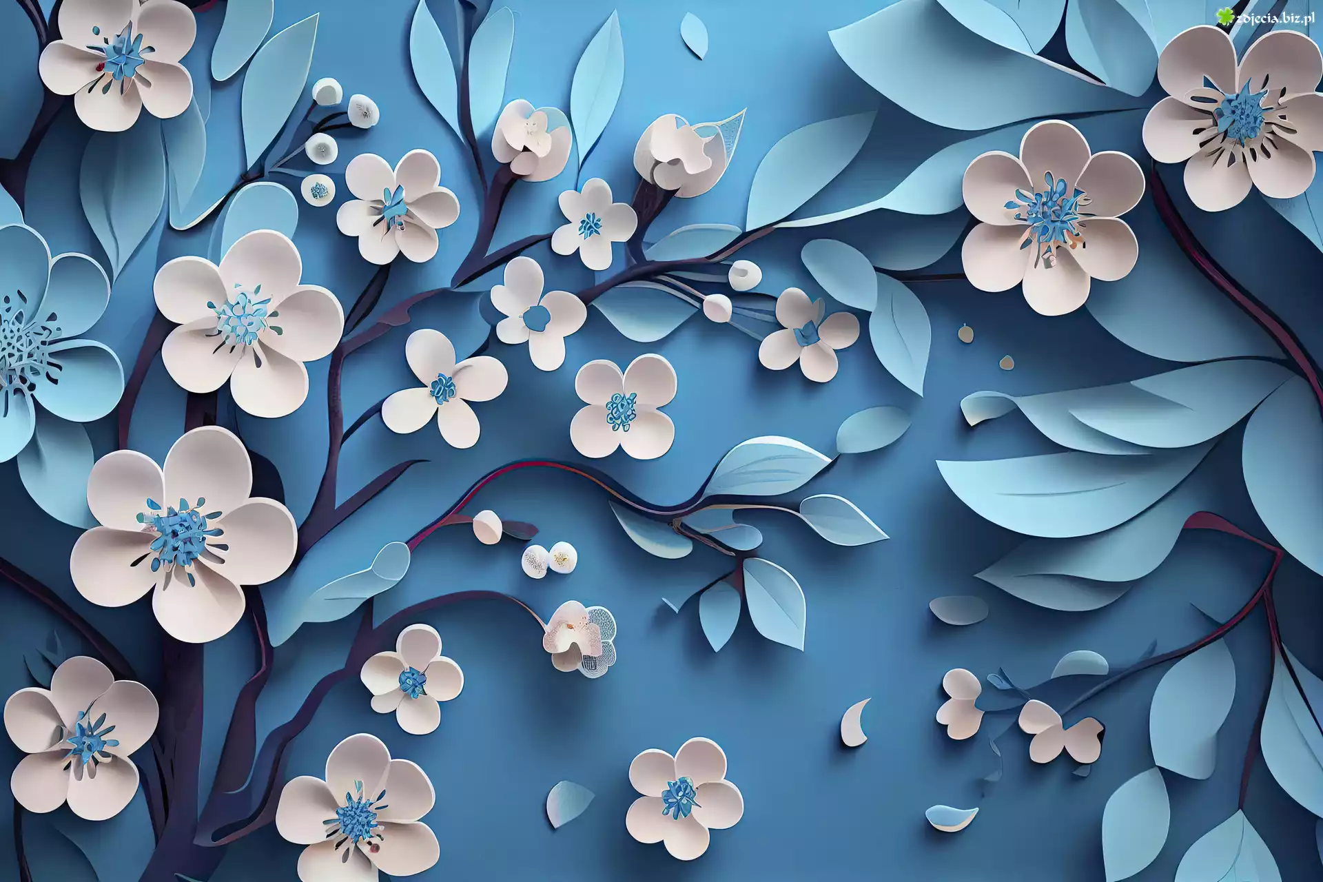 Zdjęcie Grafika, Białe, Kwiaty, Niebieskie, Tło