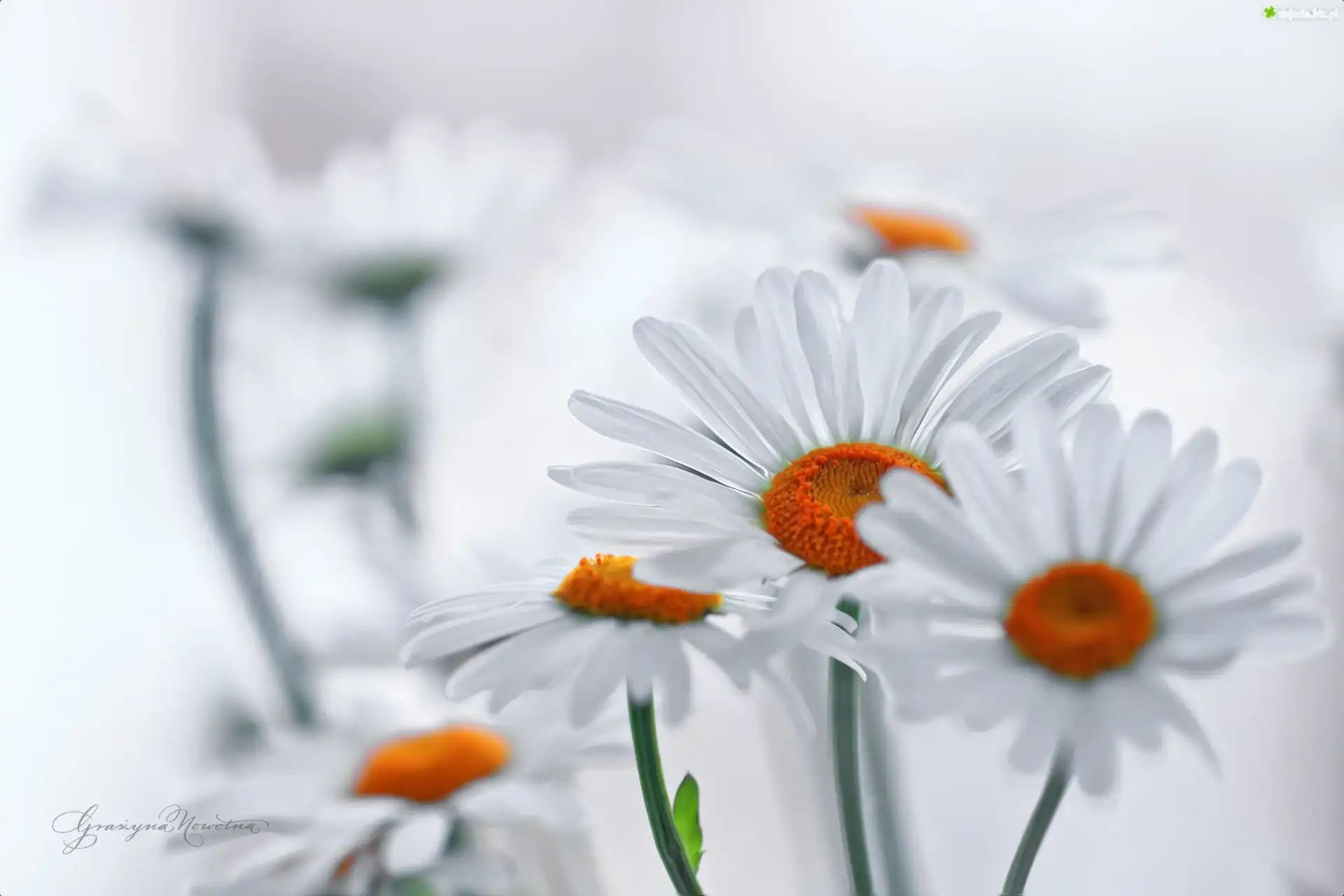 Zdjęcie, Margerytki, Białe, Kwiaty