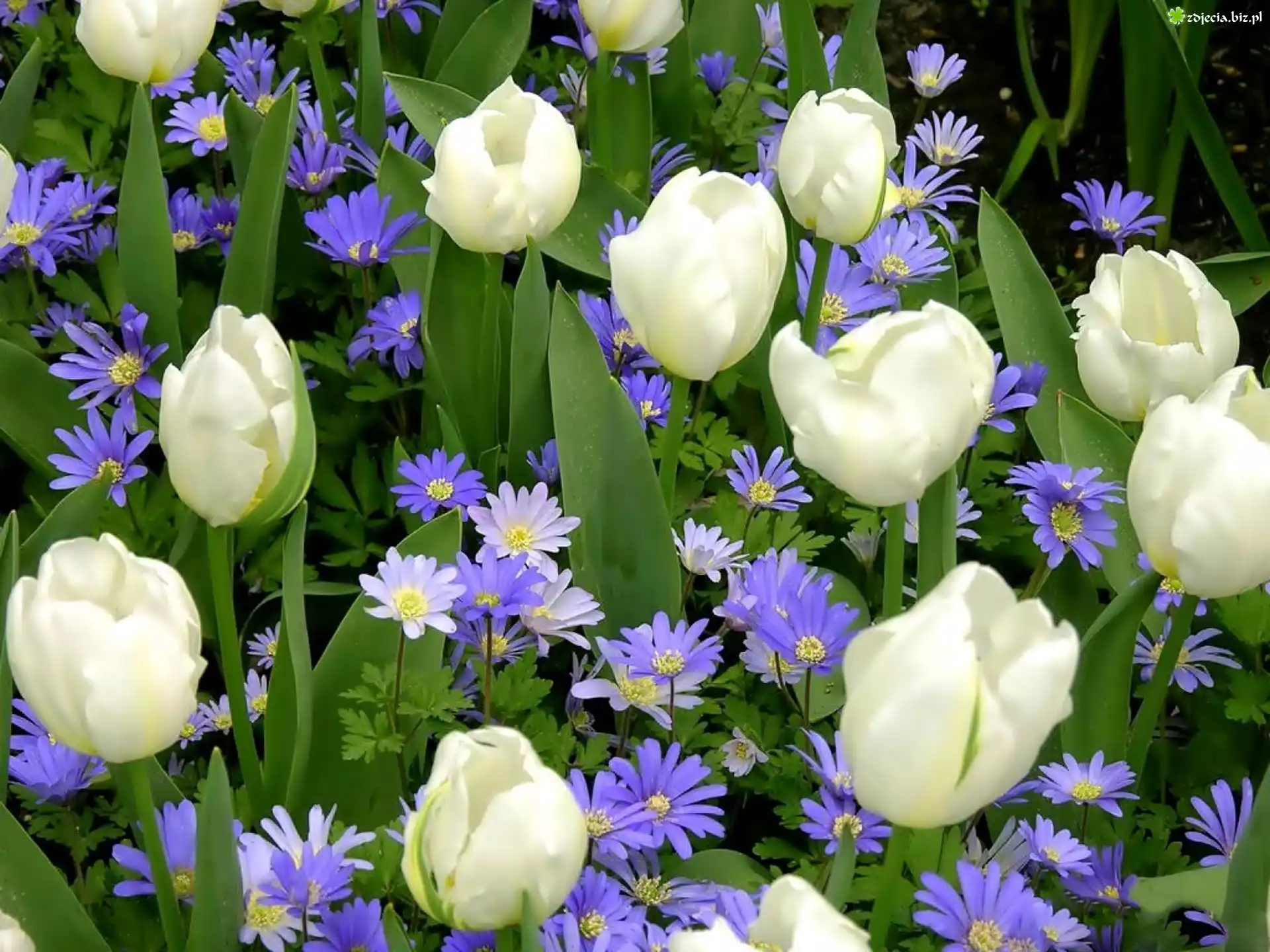 Zdjęcie Białe, Tulipany, Niebieskie, Kwiaty