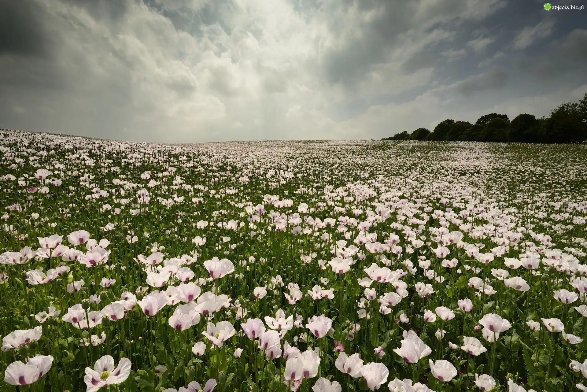 Zdjęcie Białe, Maki, Chmury, Niebo, Łąka