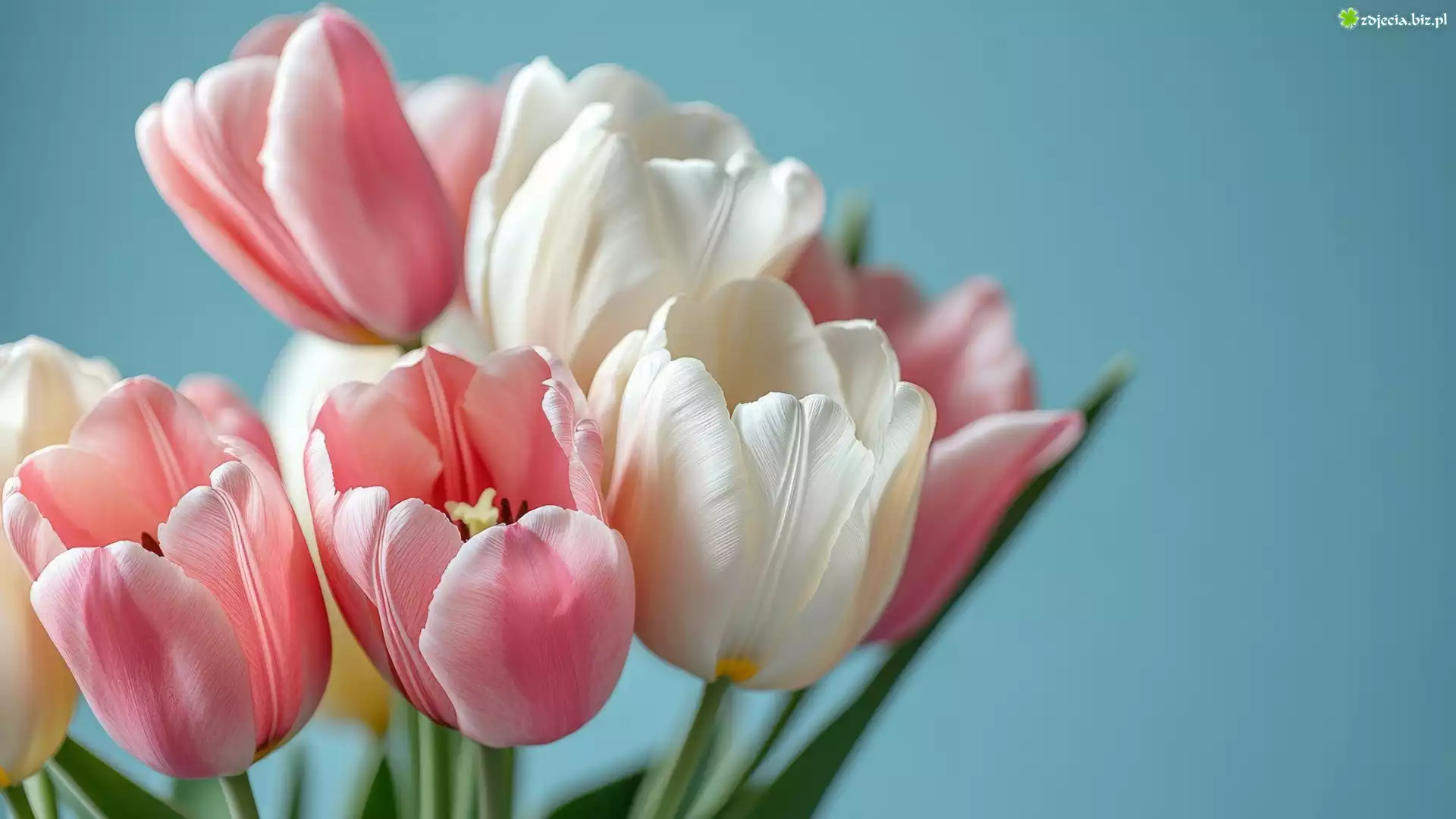 Zdjęcie Różowe, Białe, Tulipany, Niebieskie, Tło