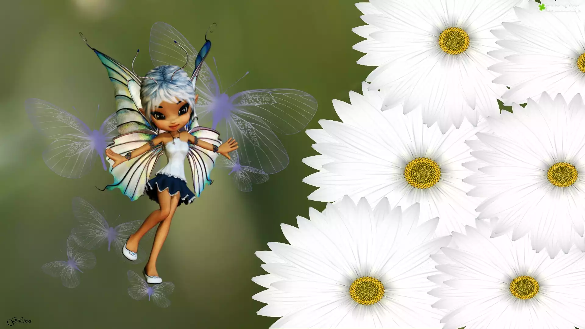 Zdjęcie Białe, Kwiaty, Laleczka, Wróżka, Grafika