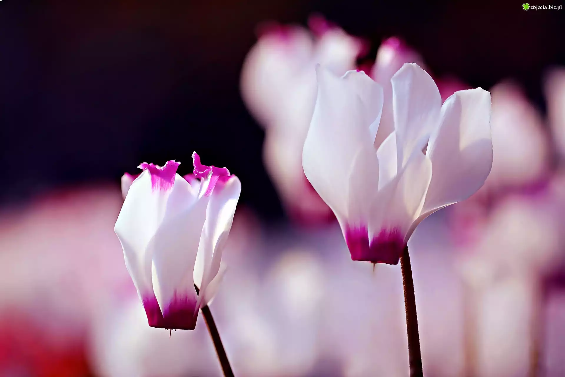 Zdjęcie Biało, Różowe, Kwiaty, Cyklameny, Makro