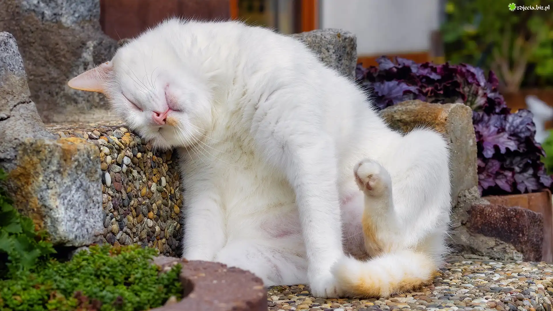 Zdjęcie Biało-rudy, Kot, Kamienie