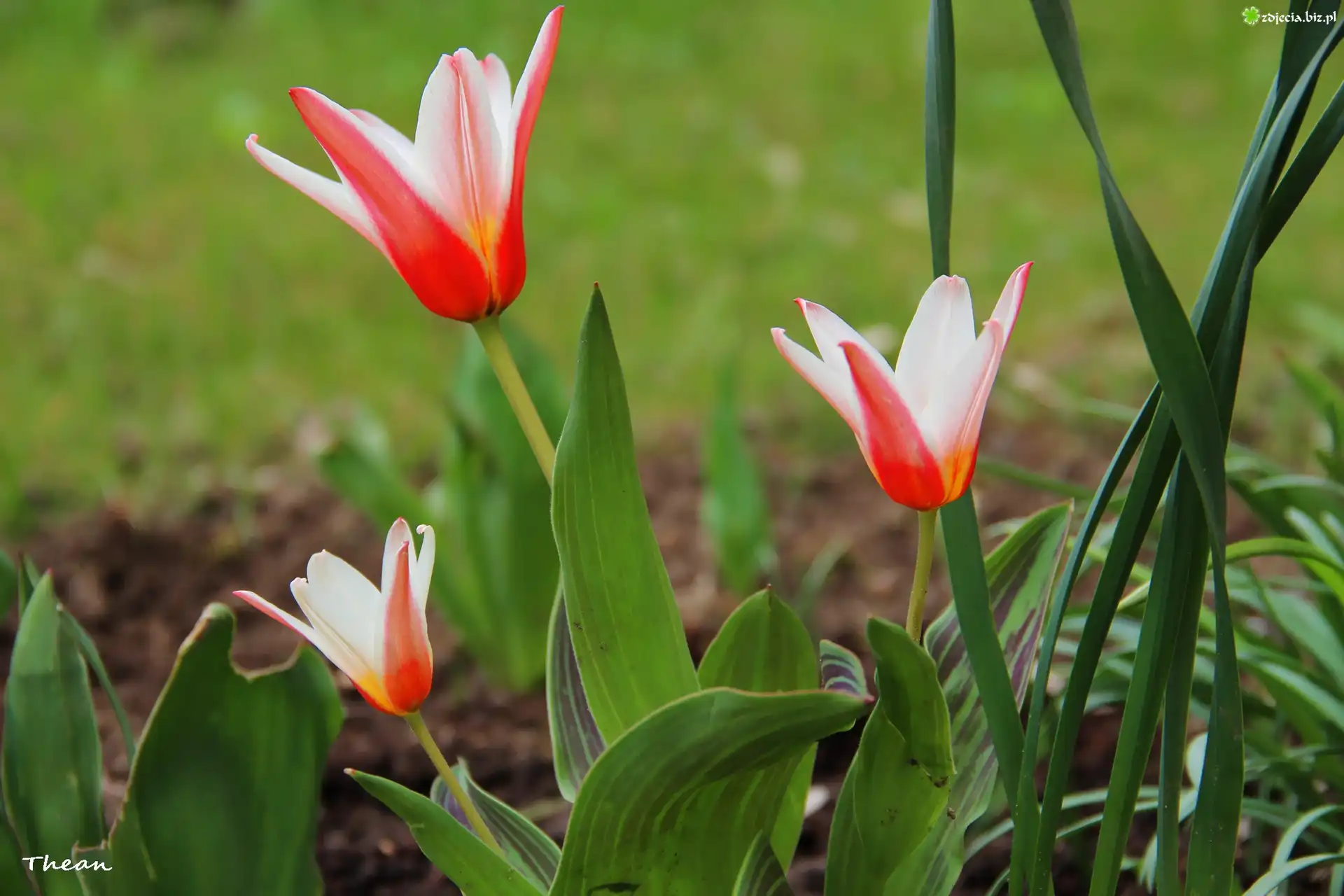 Zdjęcie Tulipany, Biało, Czerwone