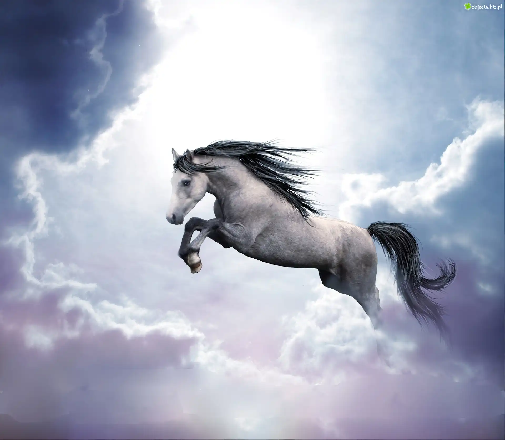 Zdjęcie Chmury, Biały, Koń