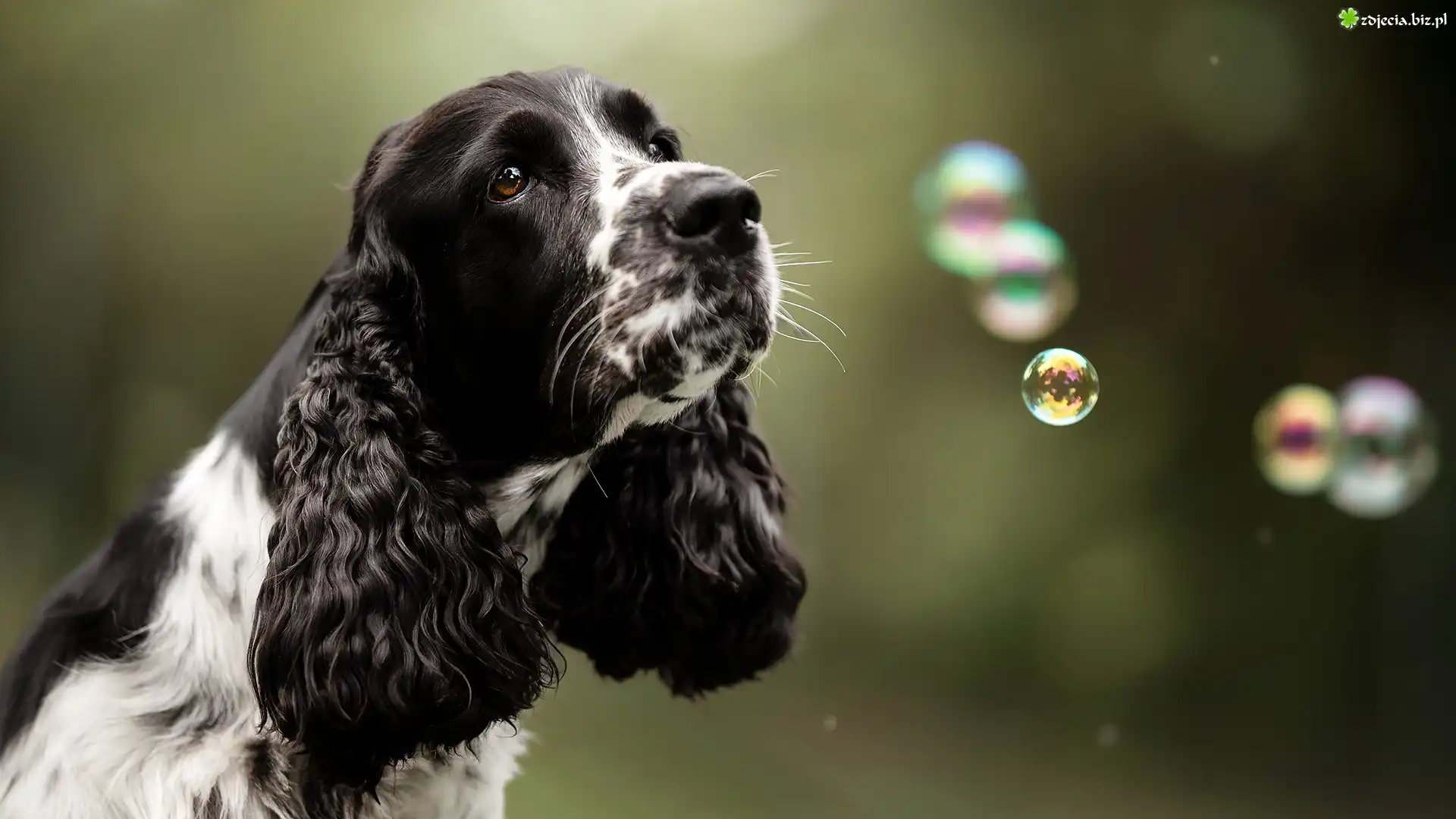 Zdjęcie Czarno-biały, Pies, Cocker spaniel angielski, Bańki