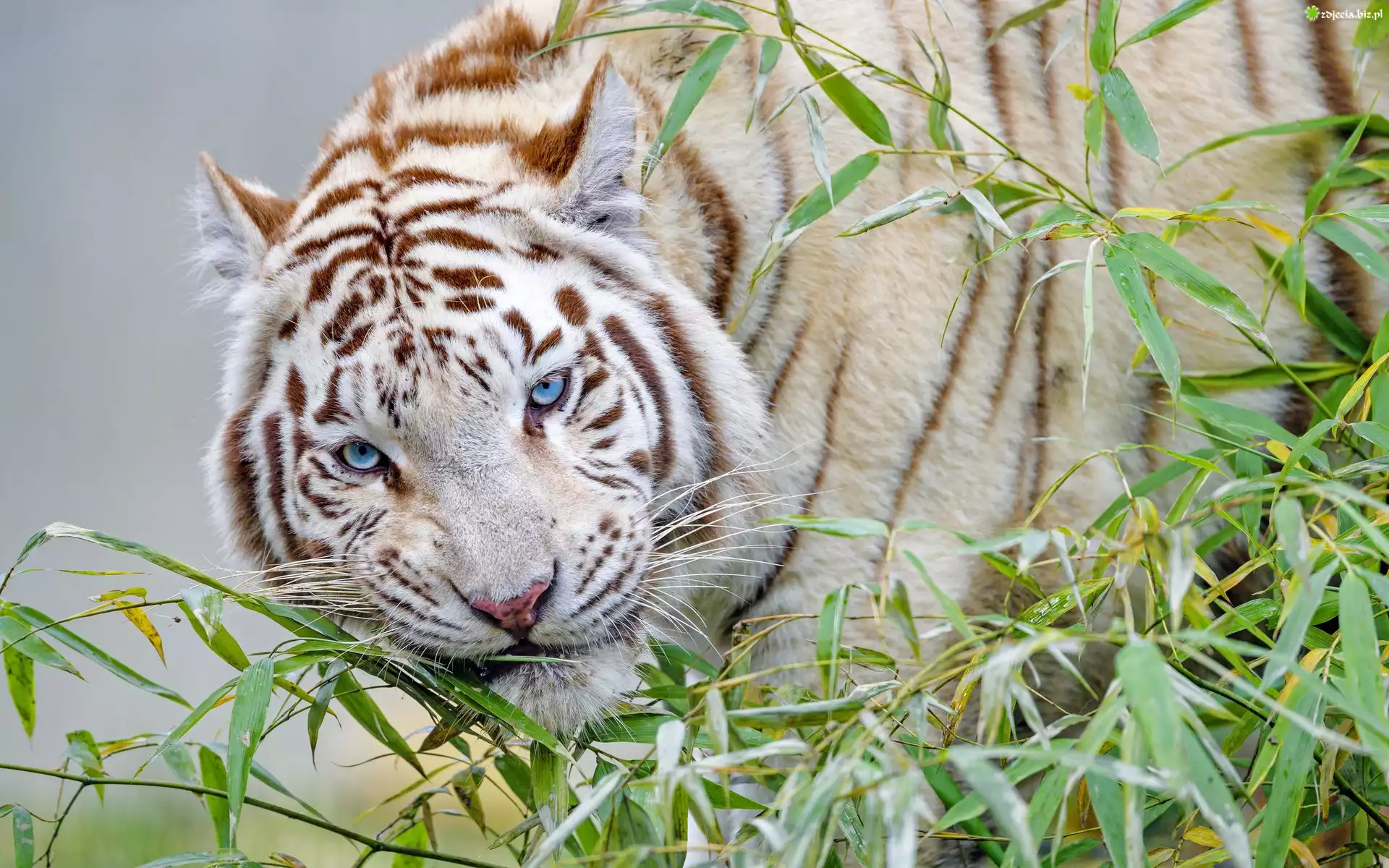 Zdjęcie Biały, Niebieskooki, Tygrys, Gałązki, Roślina
