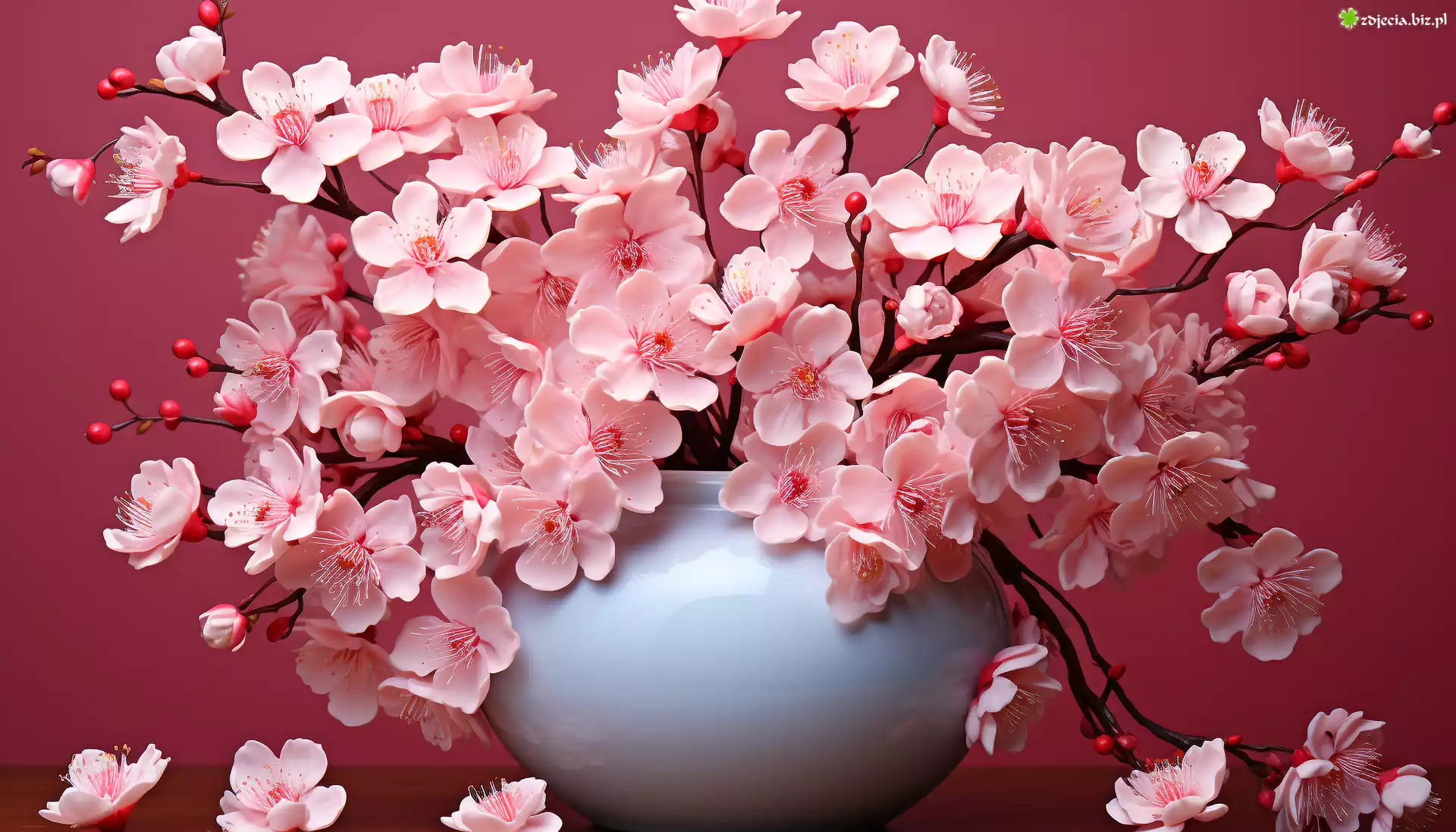 Zdjęcie Różowe, Kwiaty, Bukiet, Biały, Wazon, Grafika