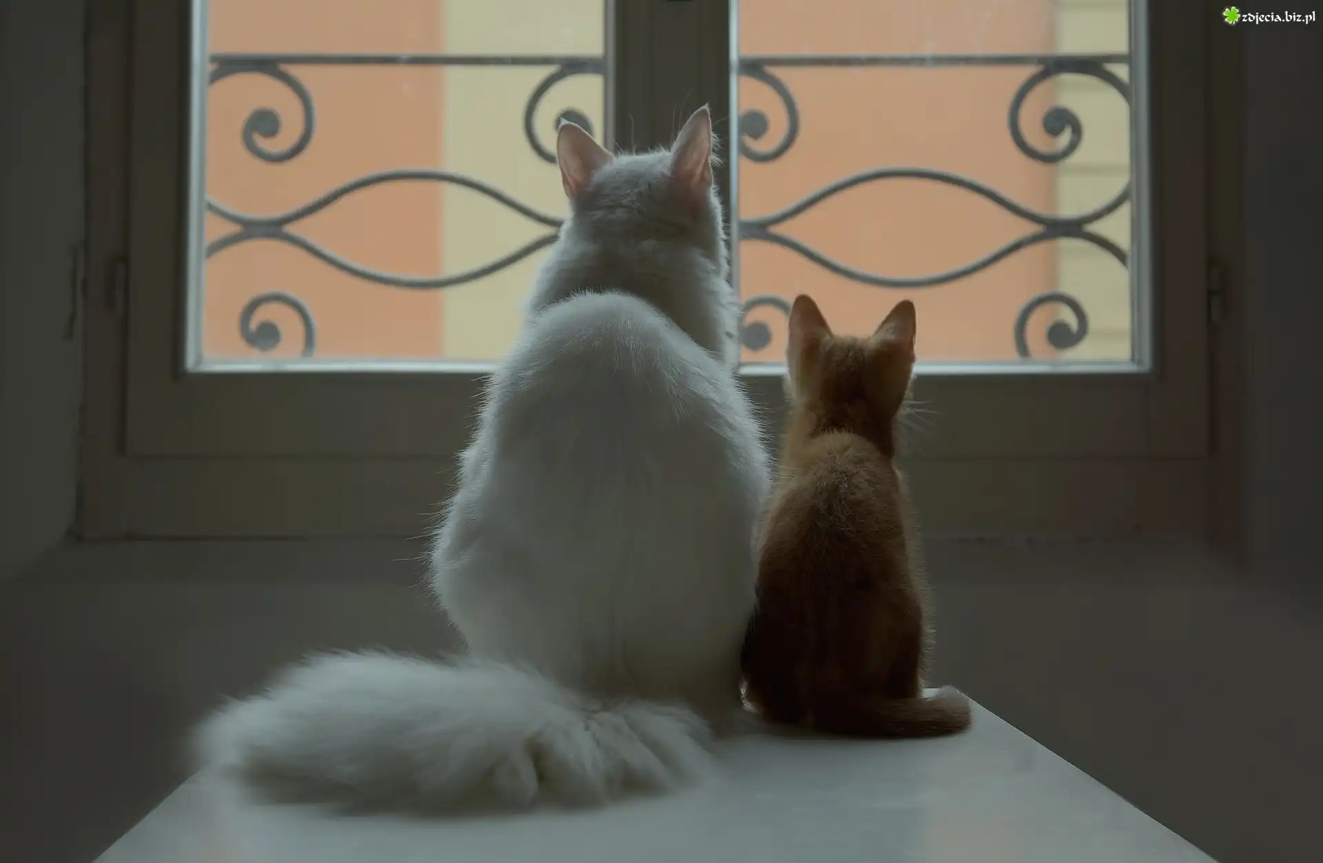 Zdjęcie Biały, Rudy, Kot, Okno