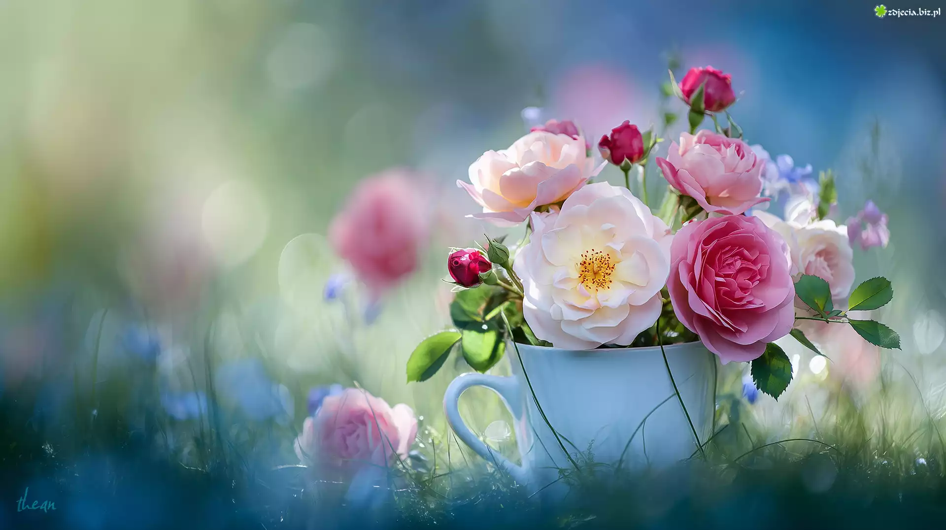 Zdjęcie Róże, Kolorowe, Kwiaty, Biały, Kubek, Grafika AI
